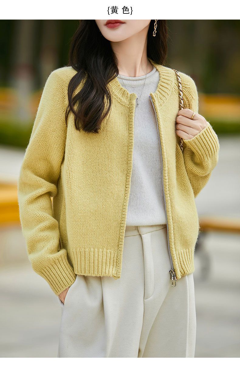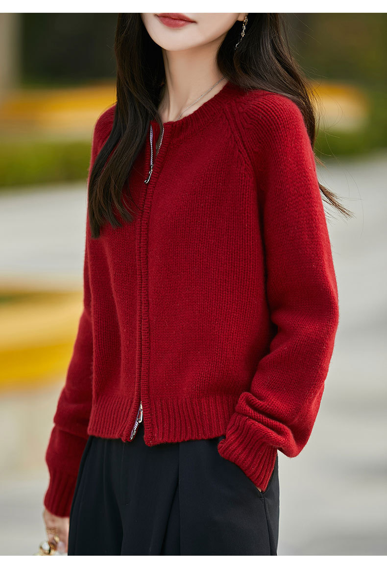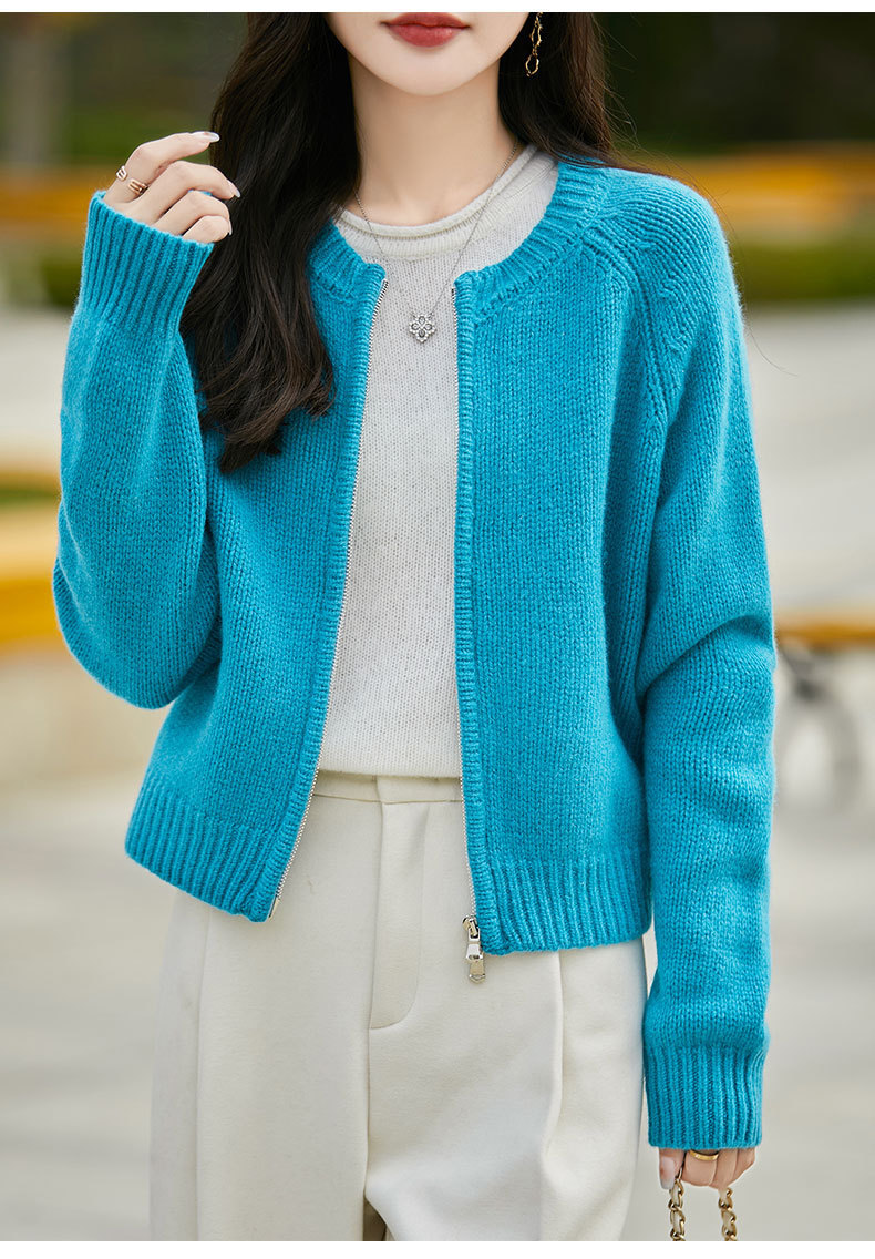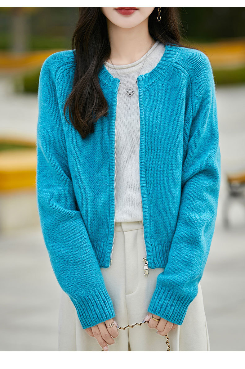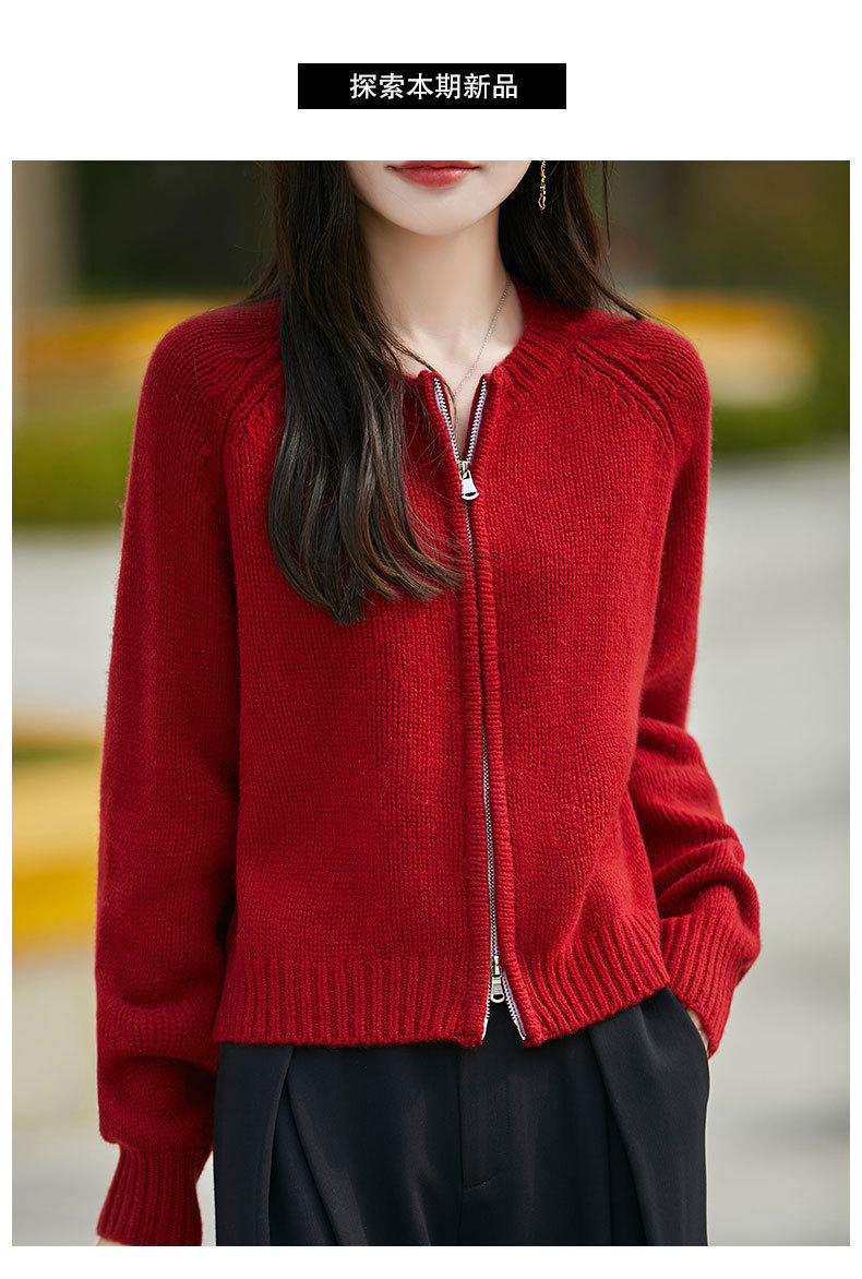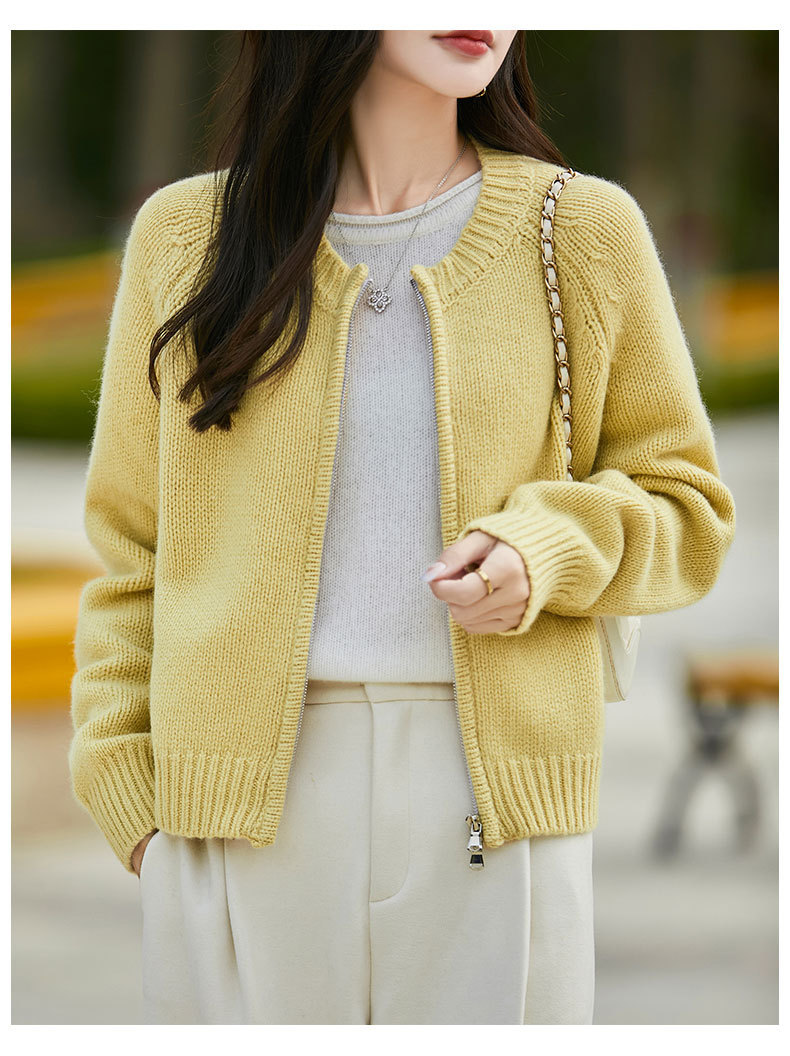 가을과 겨울 새로운 100 순수 양모 카디건 여성의 높은 허리 우아한 느슨한 외부 더블 지퍼 재킷 스웨터 탑