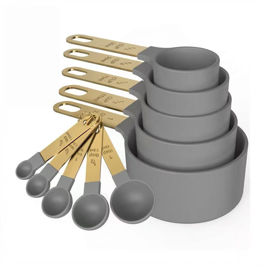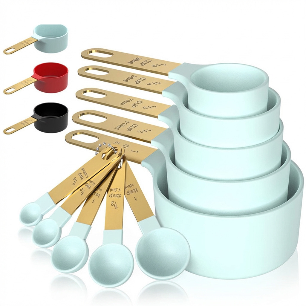 아마존 핫 세일 스테인레스 스틸 플라스틱 측정 컵 스푼 세트 10 조각 세트 베이킹 도구 주방용품 가정용