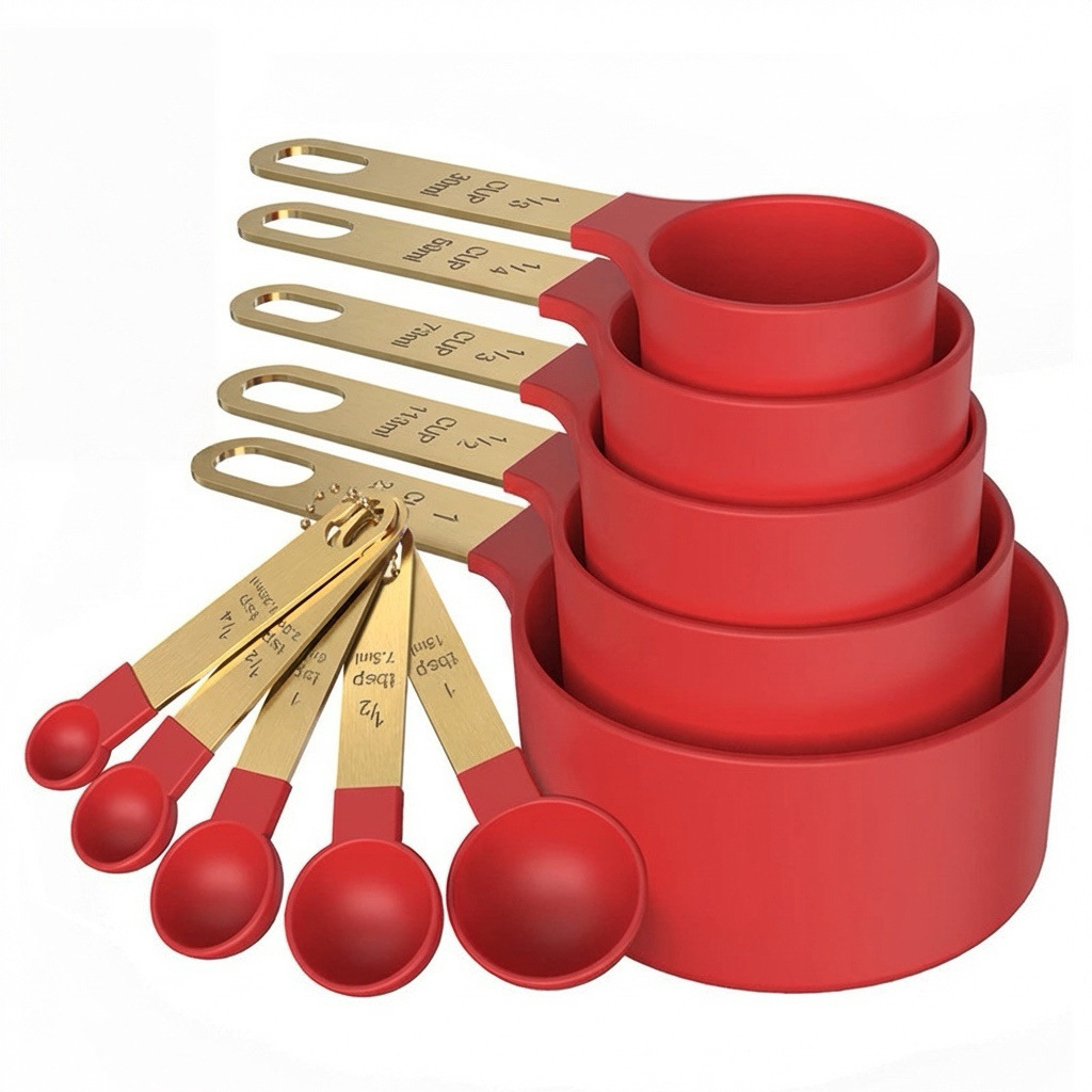 • 계량컵 계량스푼 10종 세트 레드(티타늄 도금 opp백)