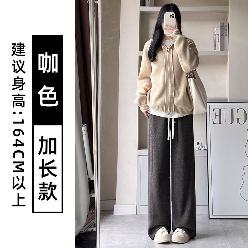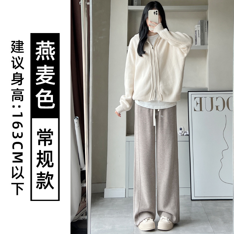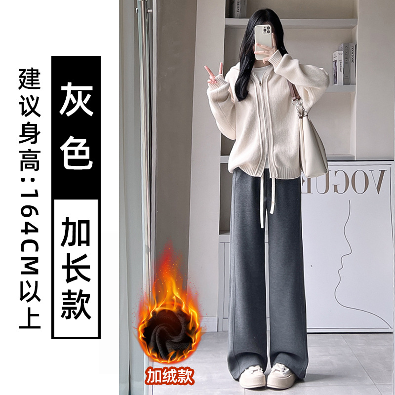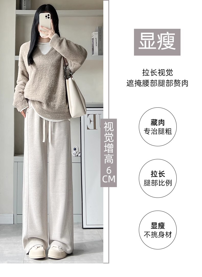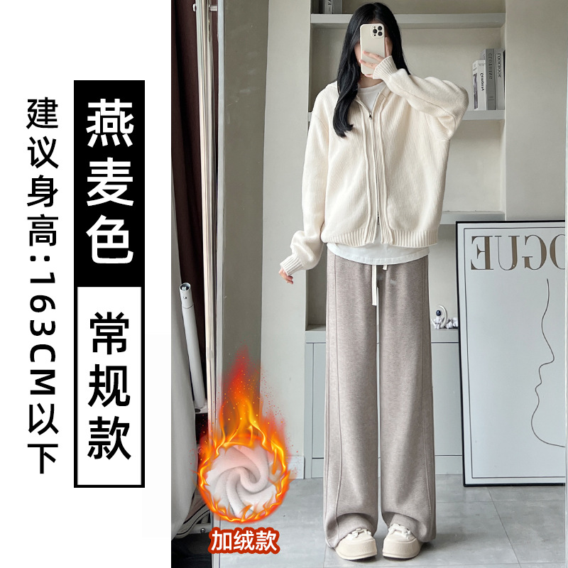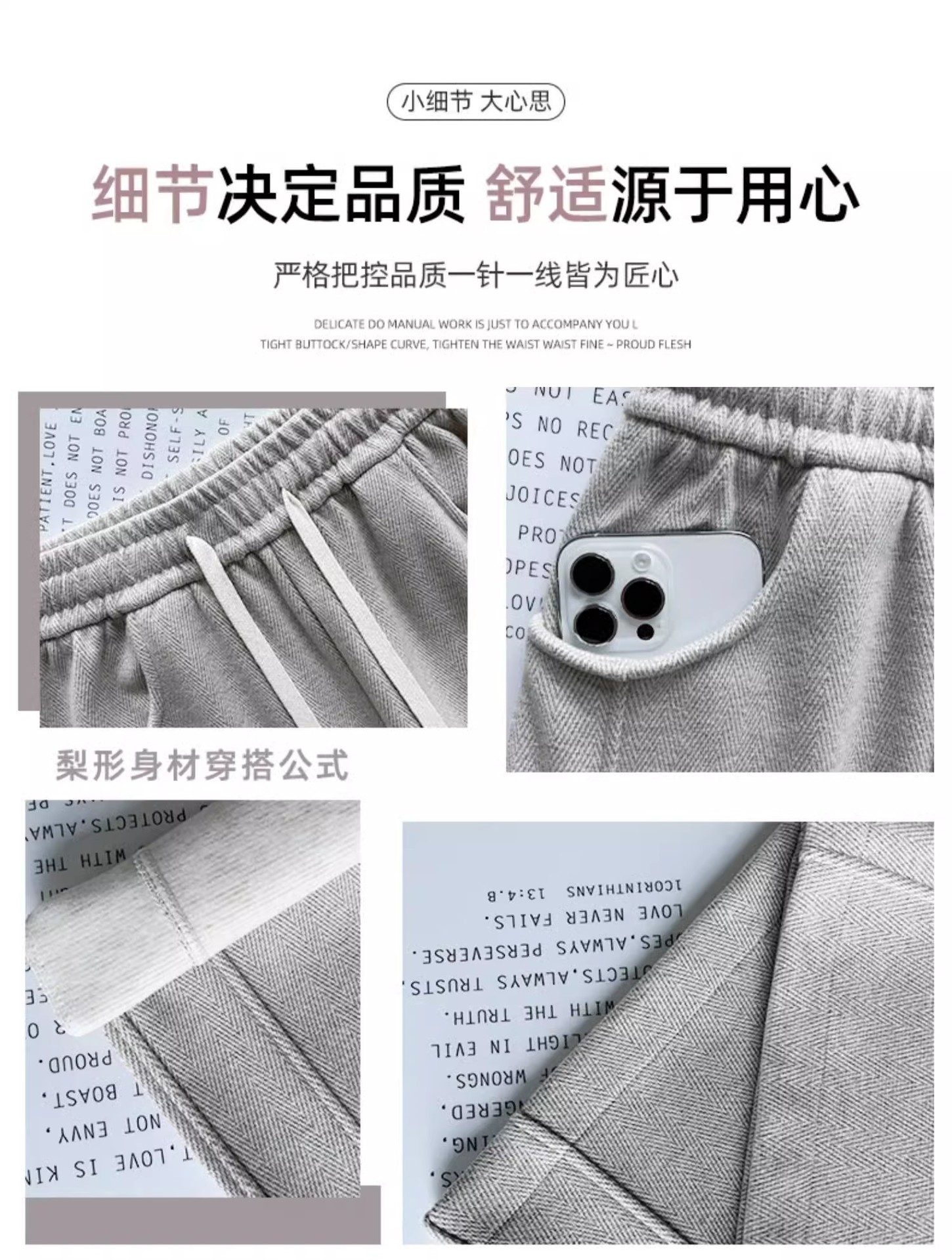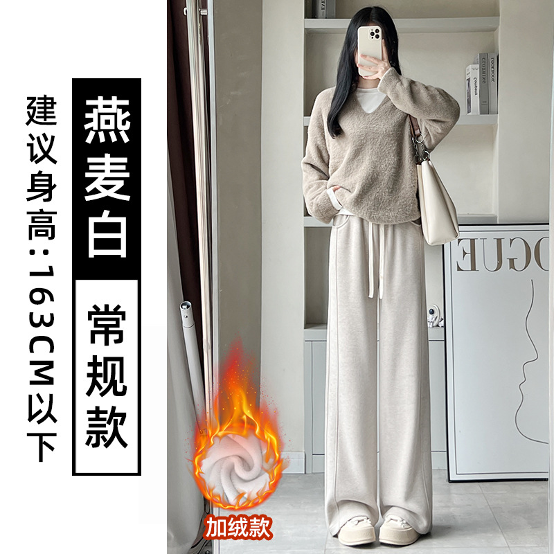 여자 헤링본 패턴 캐시미어 와이드 레그 바지 가을과 겨울 하이 허리 기모 두꺼운 스트레이트 튜브 딥 사이드 더블 라인 좁은 바나나 바지스토어 가기