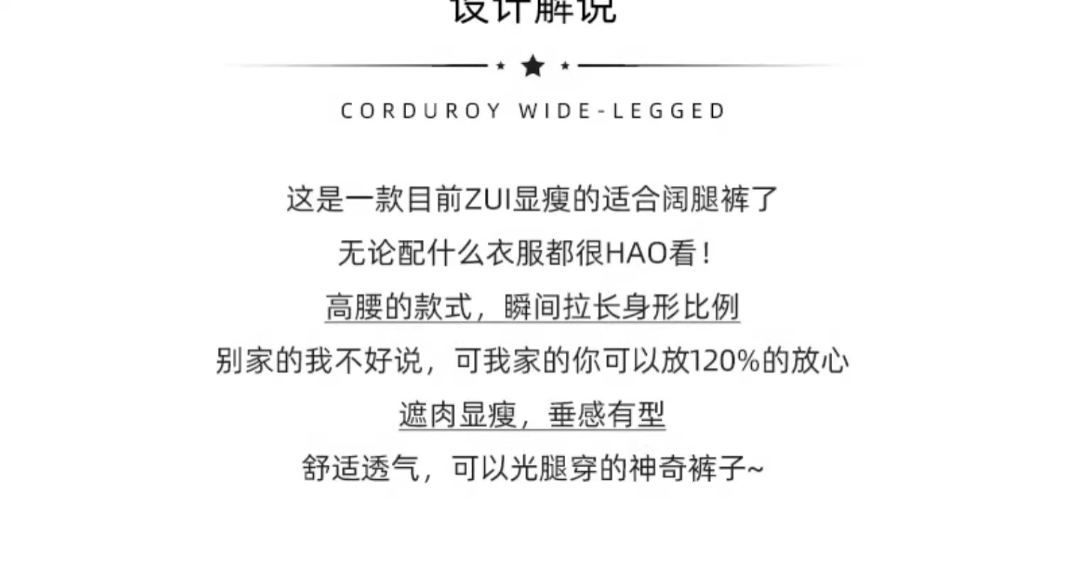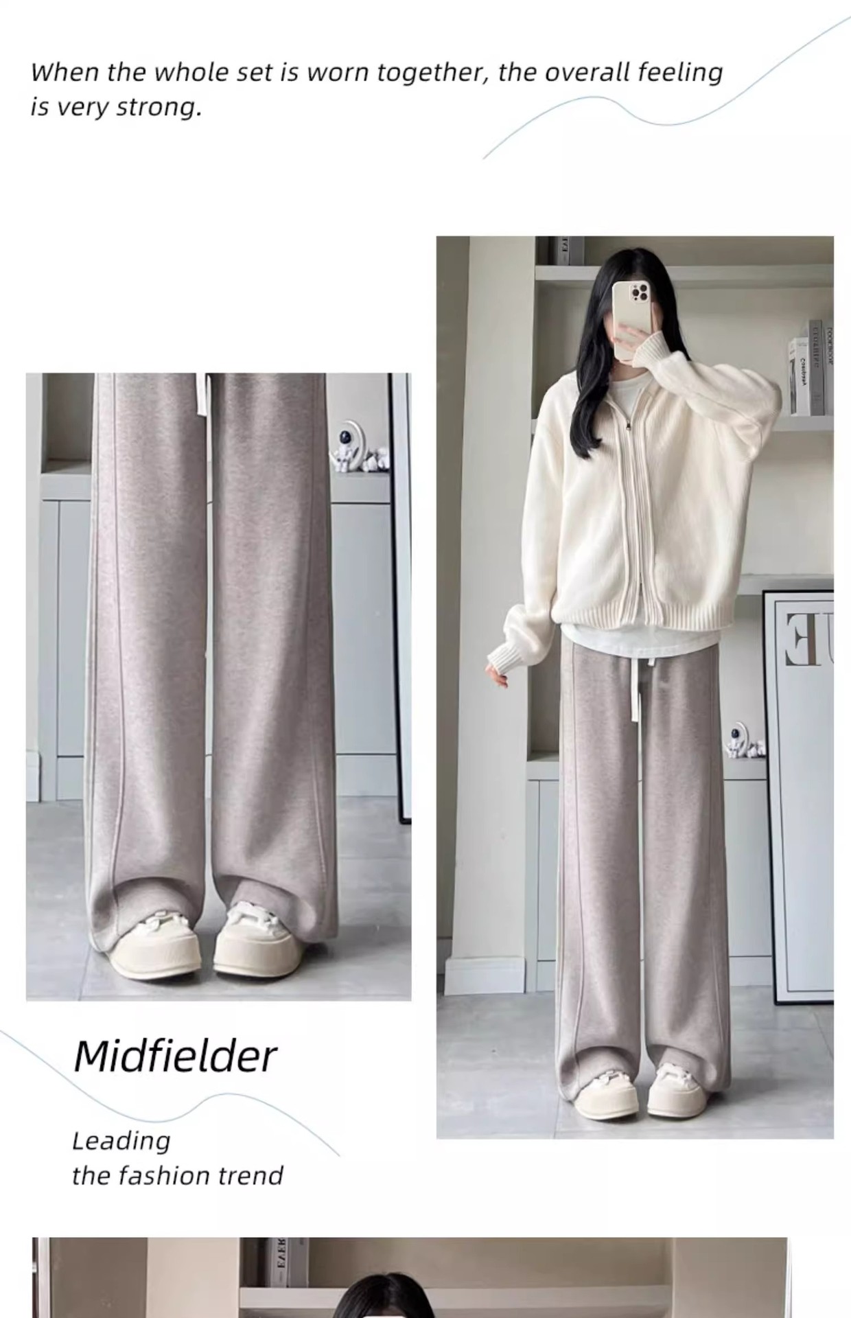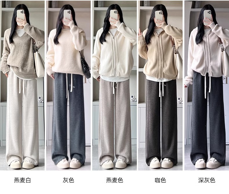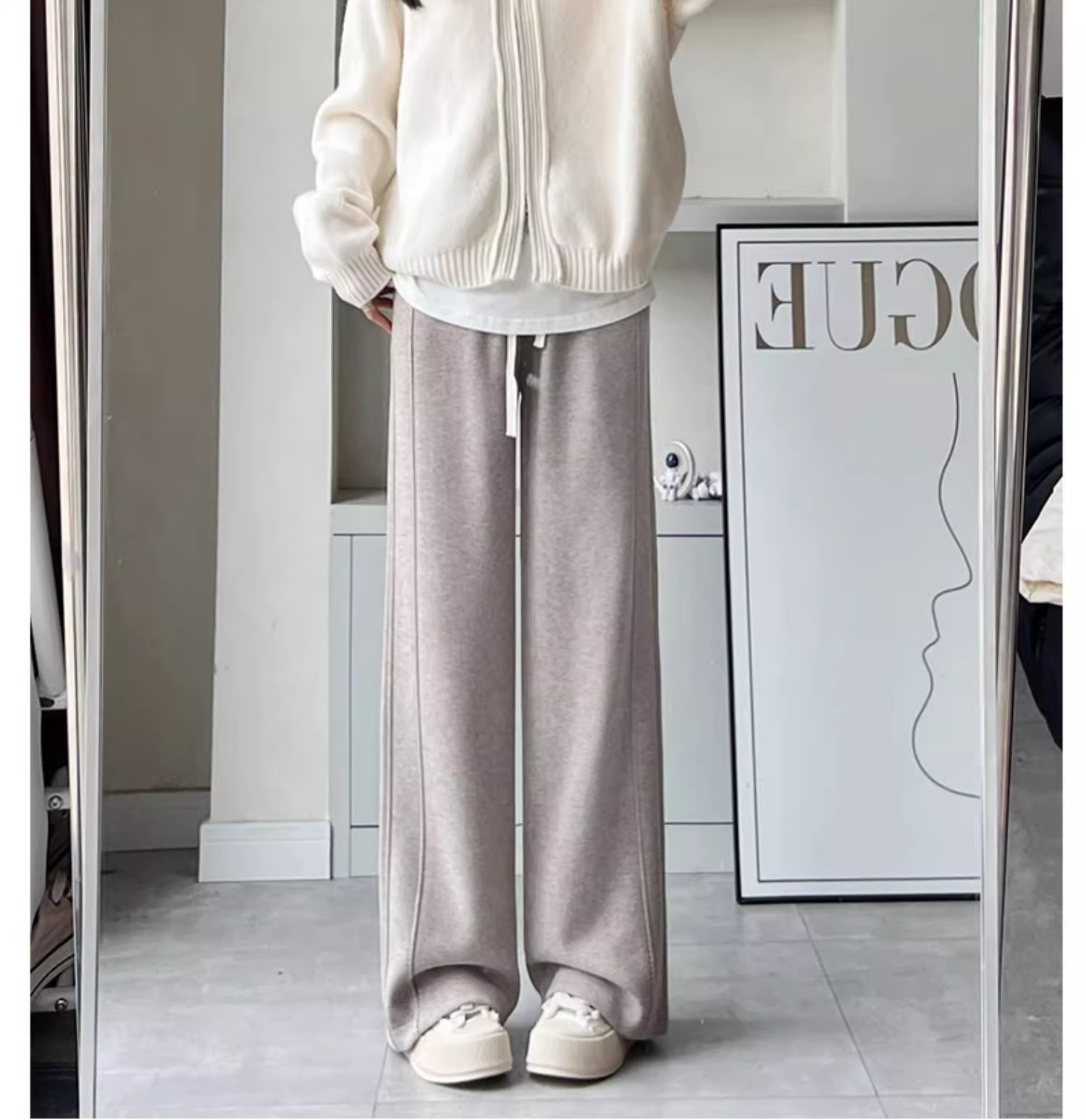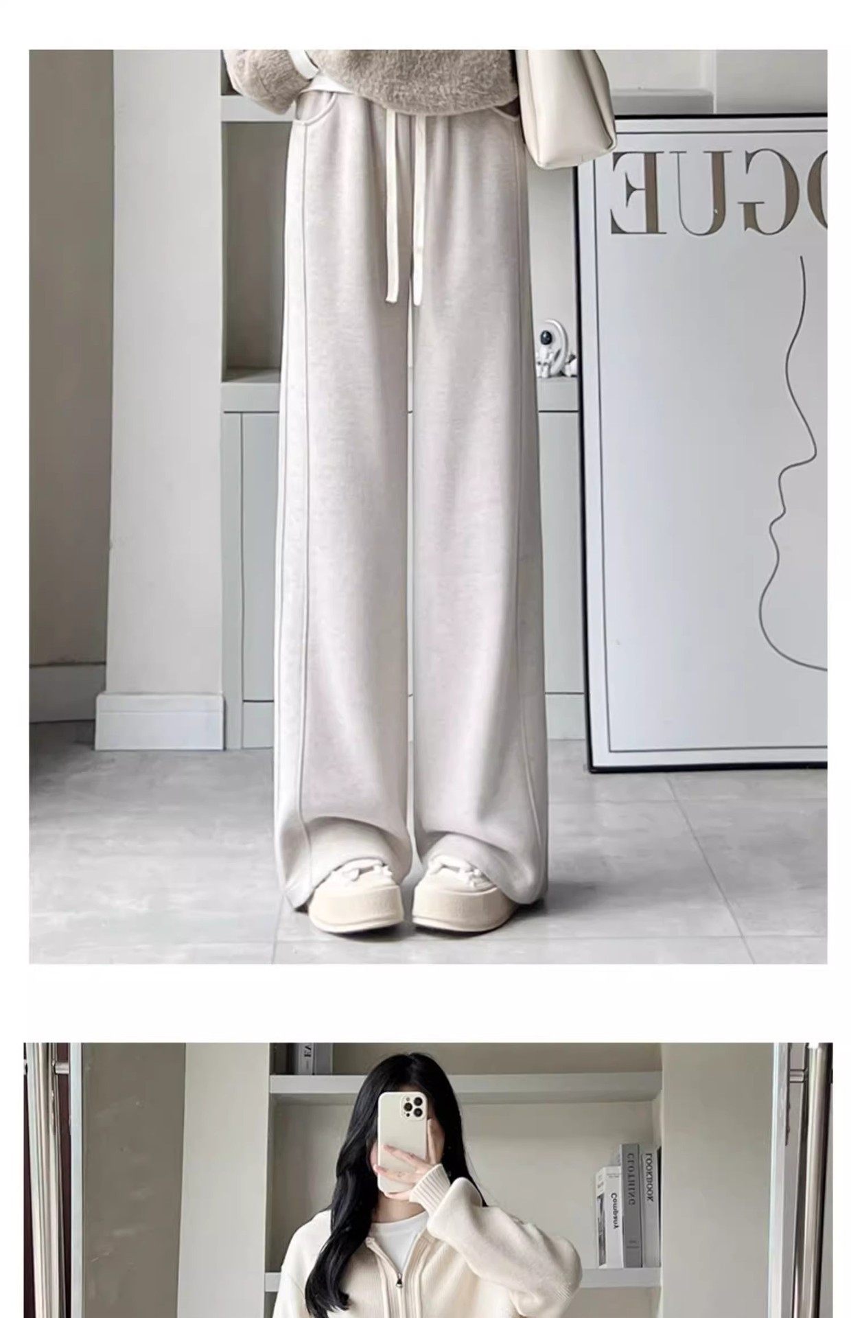 여자 헤링본 패턴 캐시미어 와이드 레그 바지 가을과 겨울 하이 허리 기모 두꺼운 스트레이트 튜브 딥 사이드 더블 라인 좁은 바나나 바지