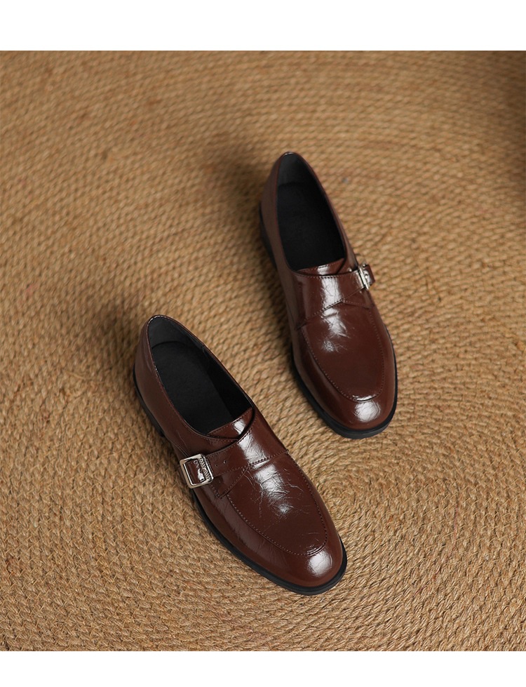 33-43 대형 신발 복고풍 둥근 머리 로퍼 두꺼운 뒤꿈치 신발 여성의 봄과 가을 새로운 벨트 버클 로우 힐 신발 크로스 보더