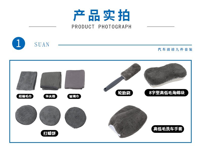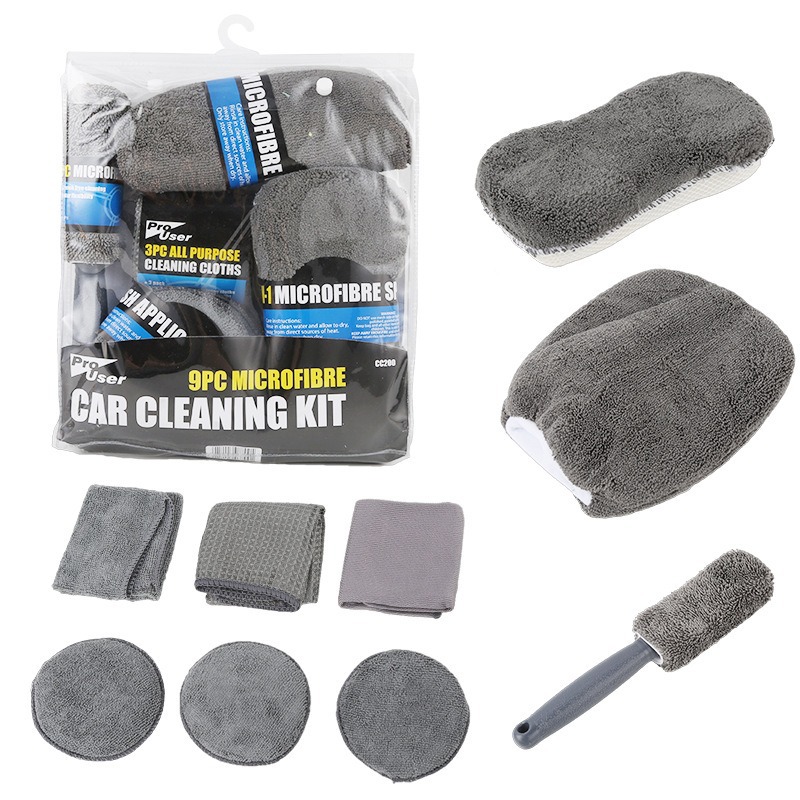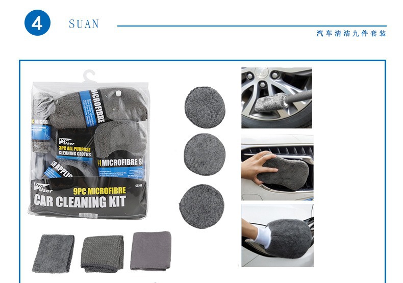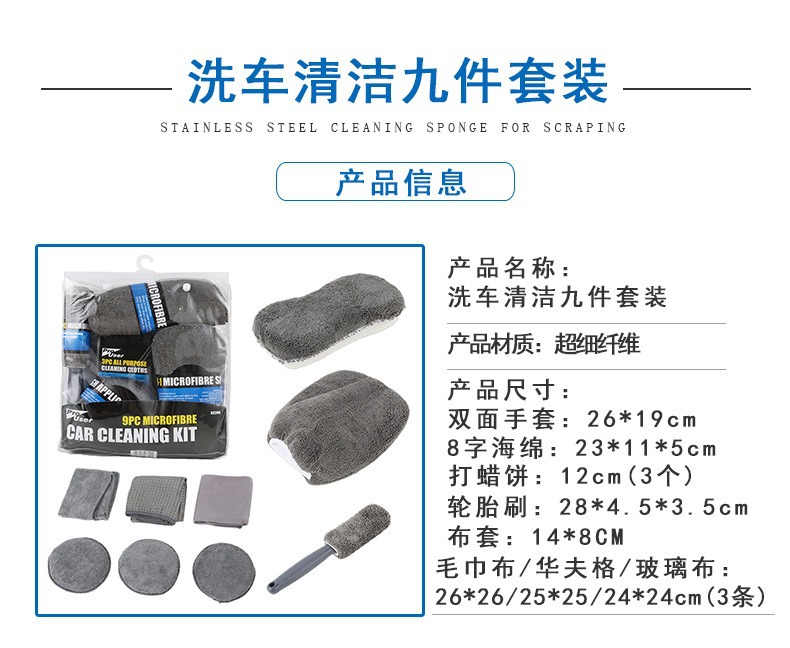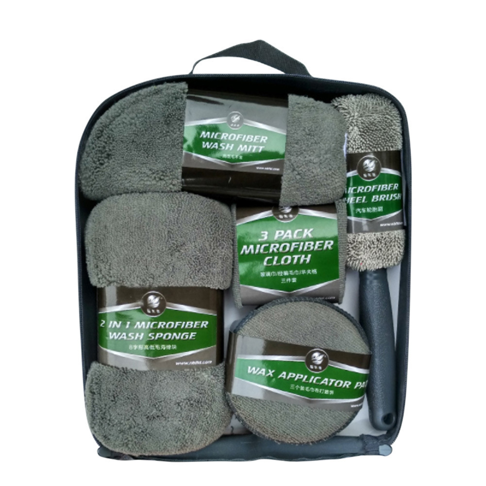 도매 세차 도구 9 피스 세트 연마 및 왁스 스펀지 세차 장갑 자동차 타월 허브 브러시 청소 스폰지