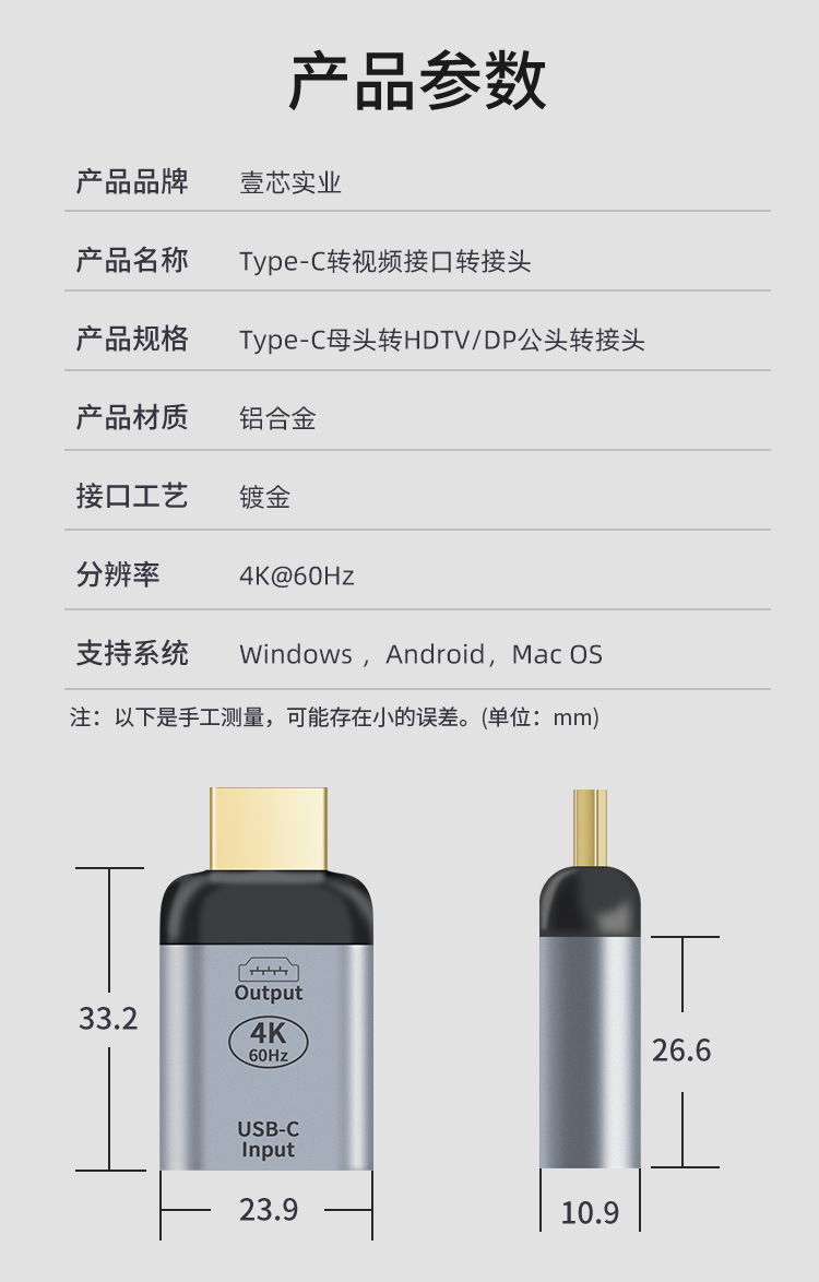 HDTV 인터페이스 변환을위한 DP 미니 DP HD 4K60Hz 화면에 비디오 어댑터 Type-C 버스