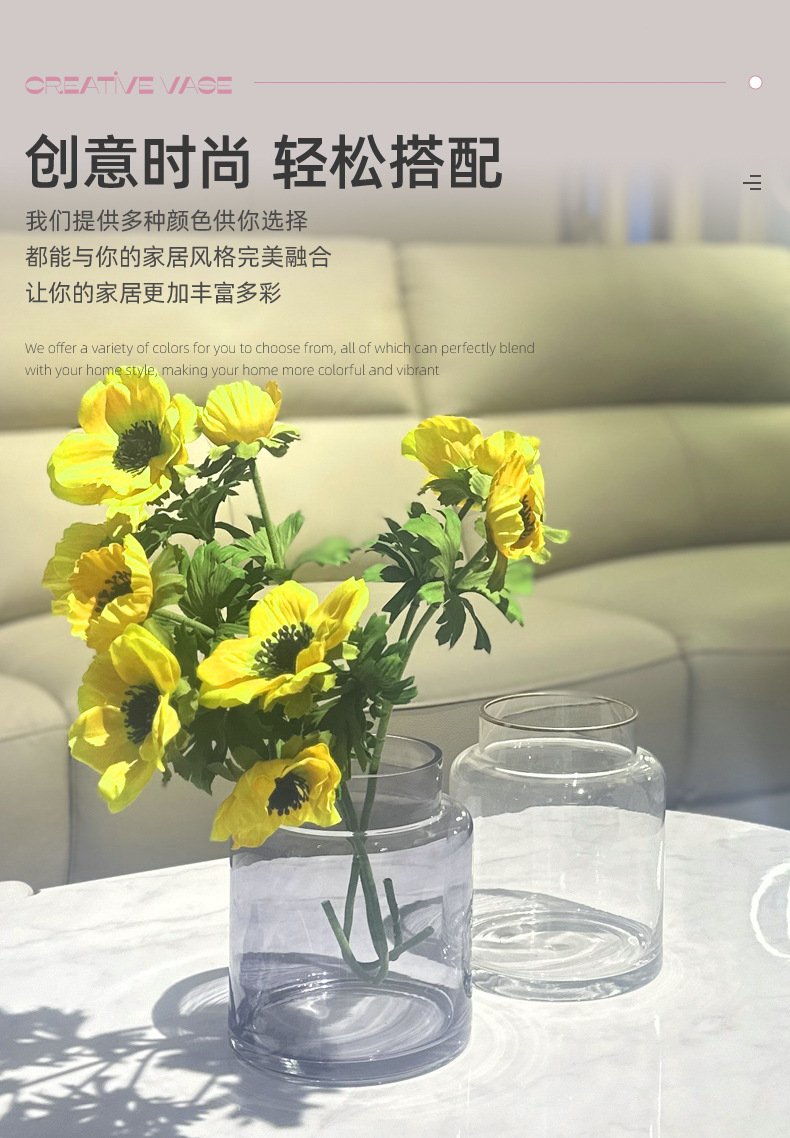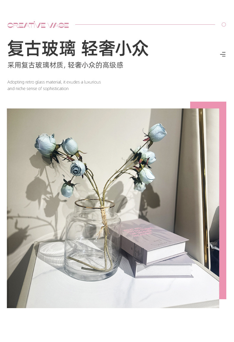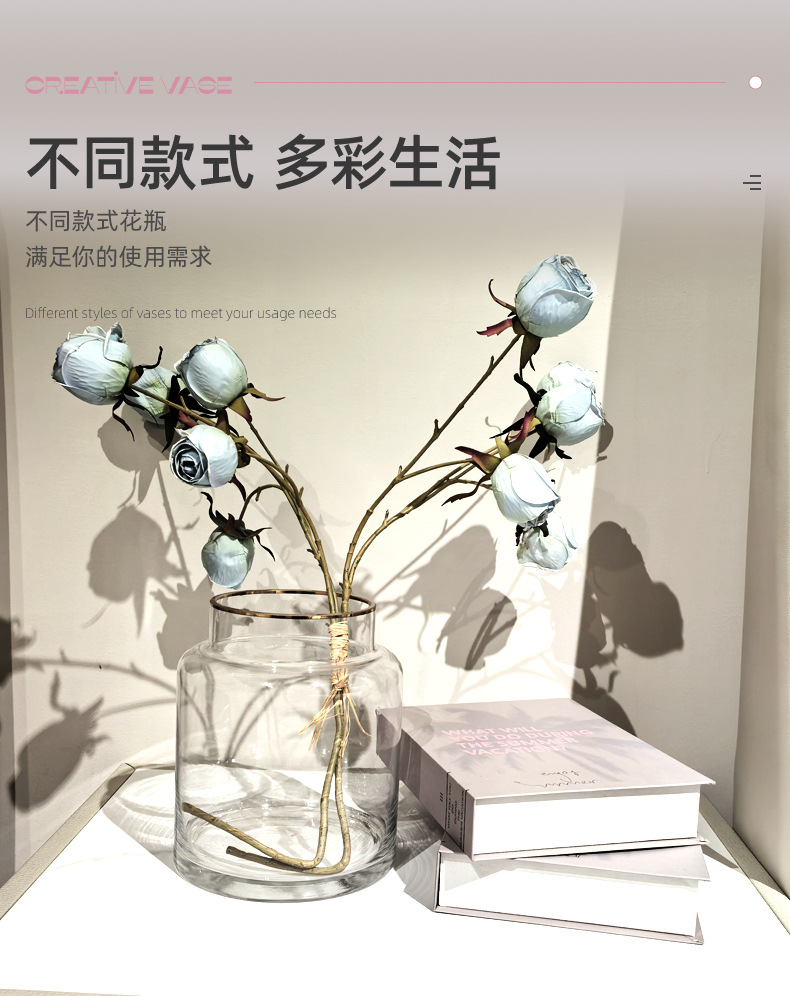 유럽식 투명 유리 꽃병 수경 꽃 로즈 릴리 플라워-거실 식탁 줄 지어 스트레이트 인 간단한