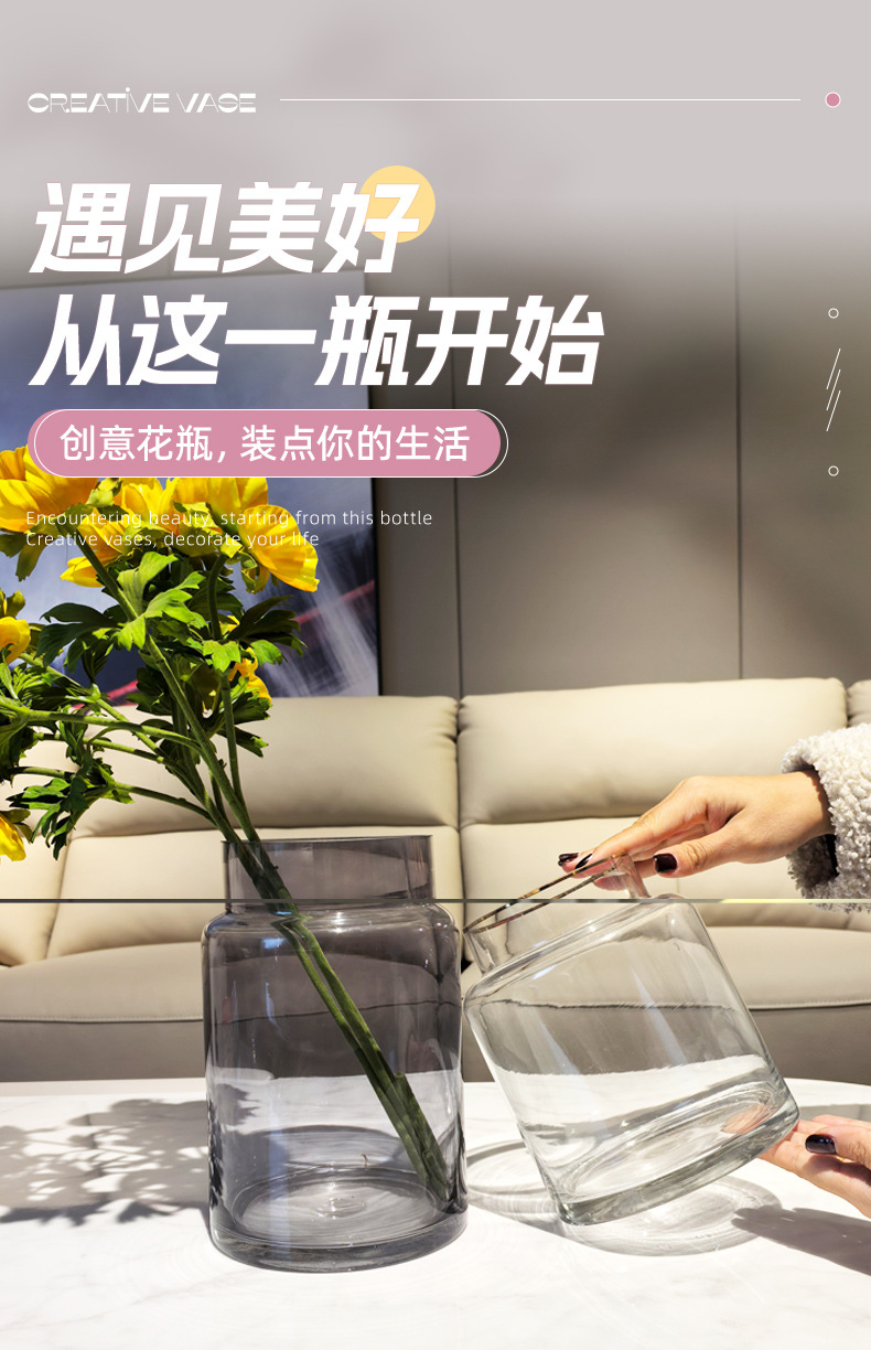 유럽식 투명 유리 꽃병 수경 꽃 로즈 릴리 플라워-거실 식탁 줄 지어 스트레이트 인 간단한스토어 가기