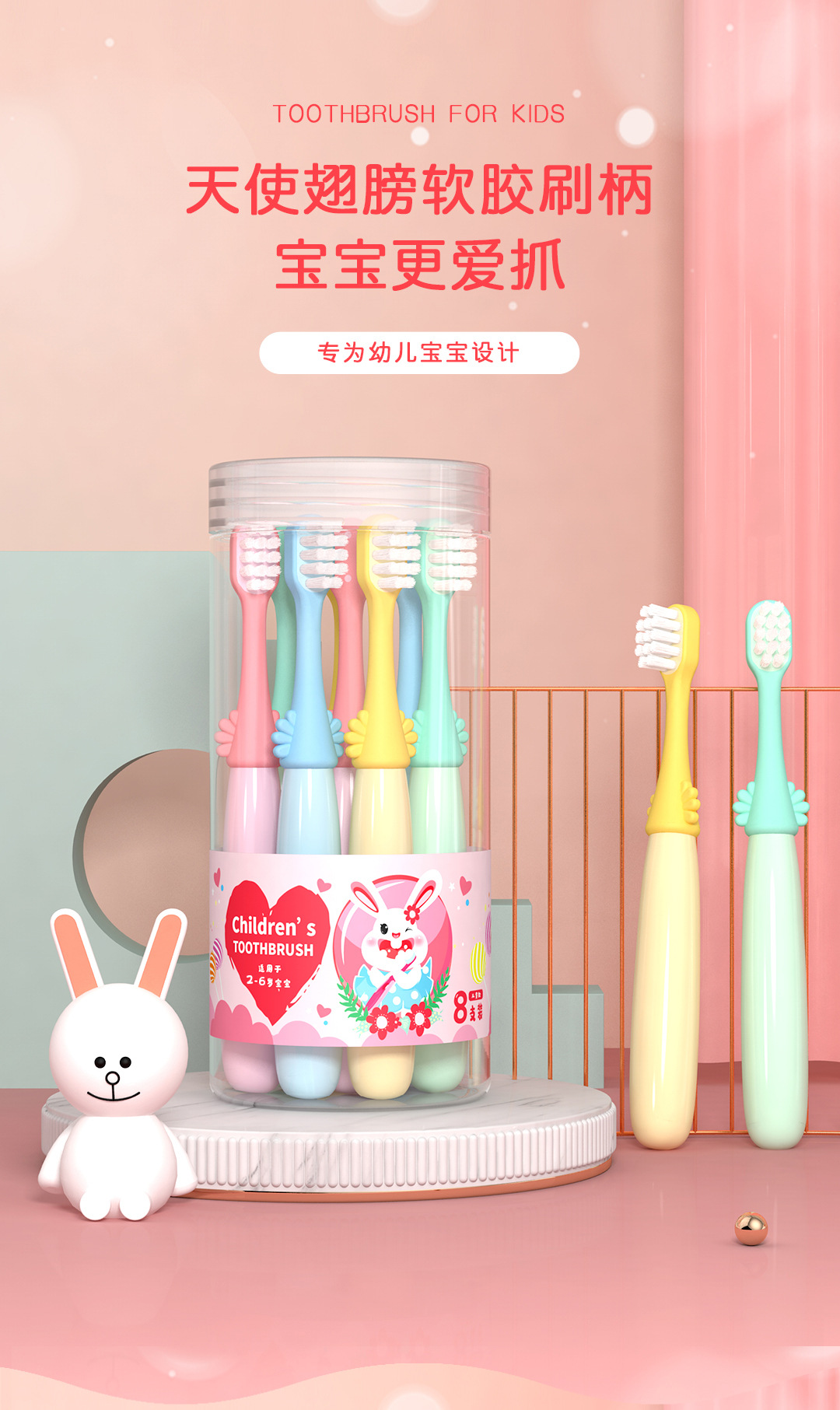마이크 어린이 부드러운 머리 칫솔 만화 작은 천사 모양 관리 껌 8 배럴 천사 편지 칫솔