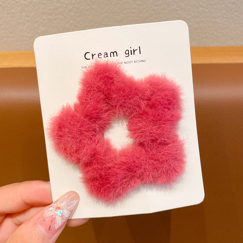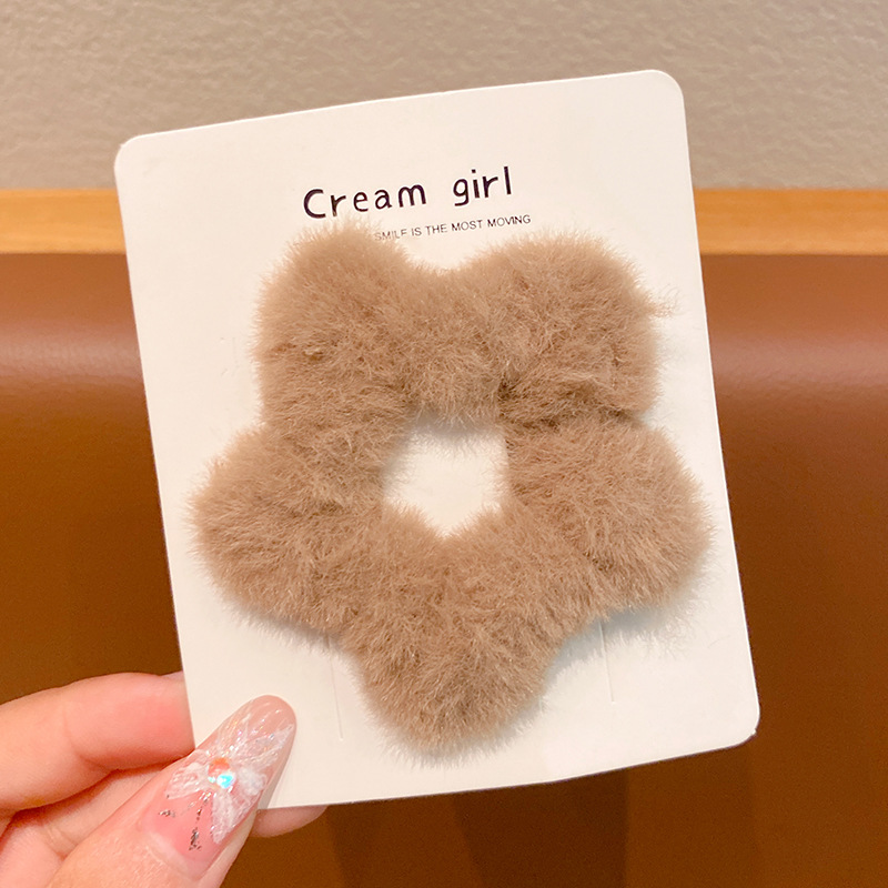 가을과 겨울 모피 라이스 커피 간단한 스타 BB 클립 인 소녀 봉제 다섯개 별 사이드 클립 귀여운 헤어 액세서리 헤어핀