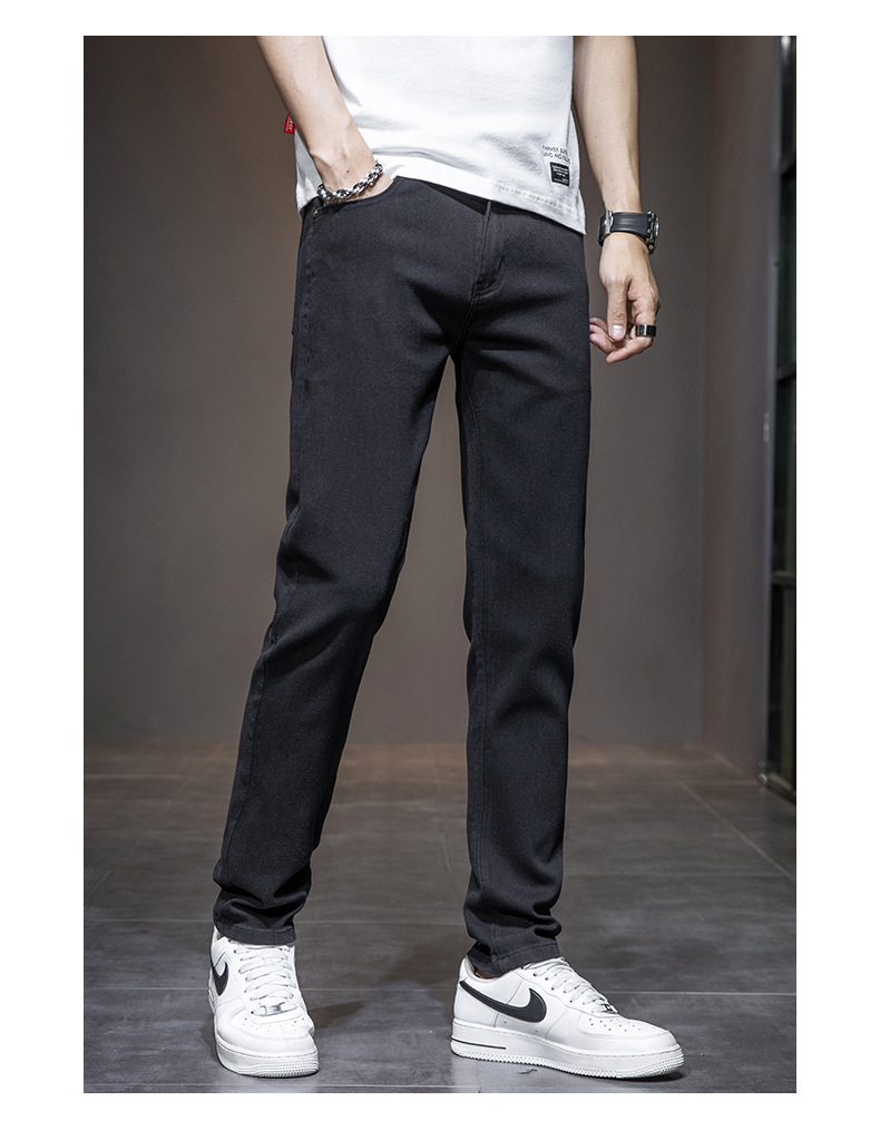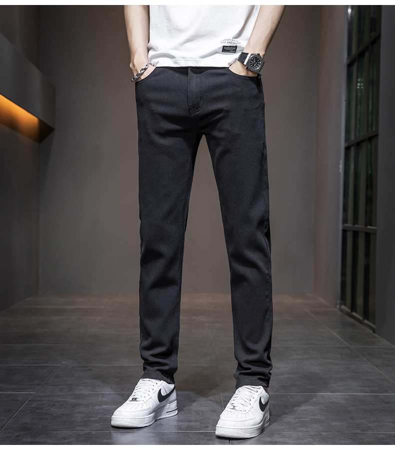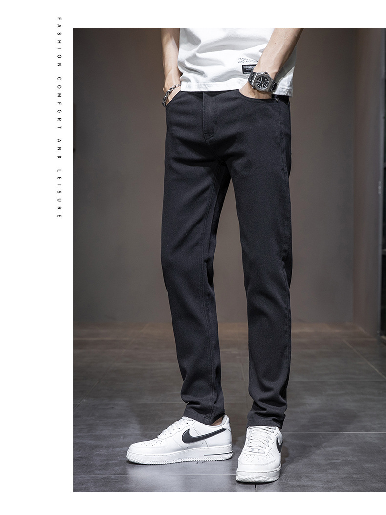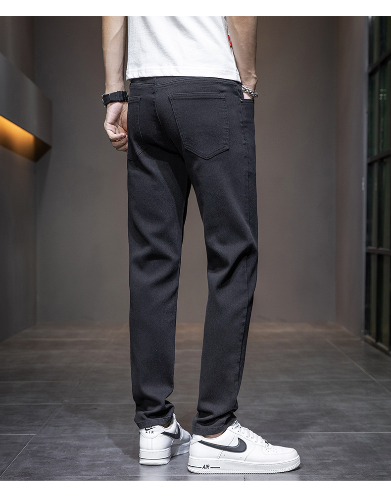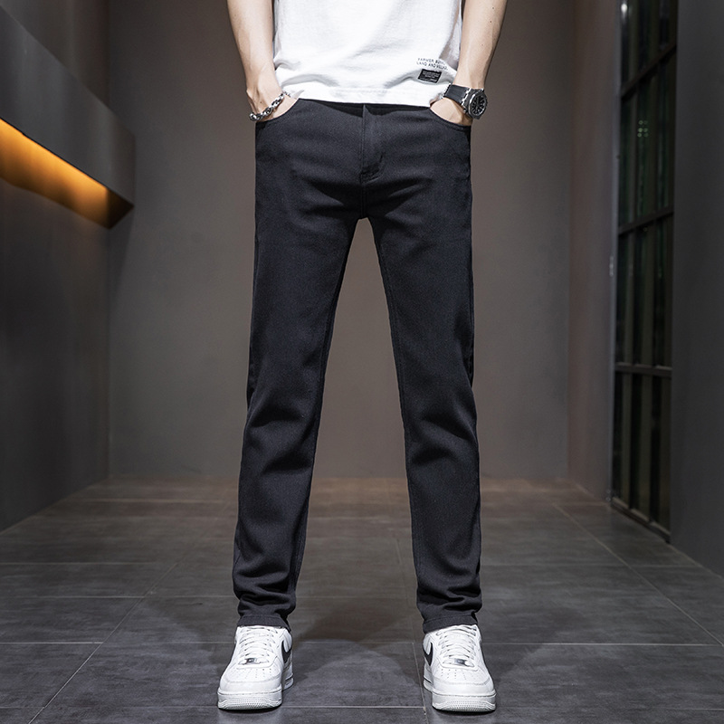 딱따구리 블랙 마이크로 탄성 슬림 핏 작은 스트레이트 솔리드 컬러 남성 캐주얼 패션 바지 트렌디 올 매치 청바지스토어 가기