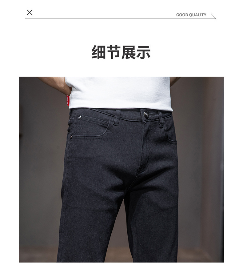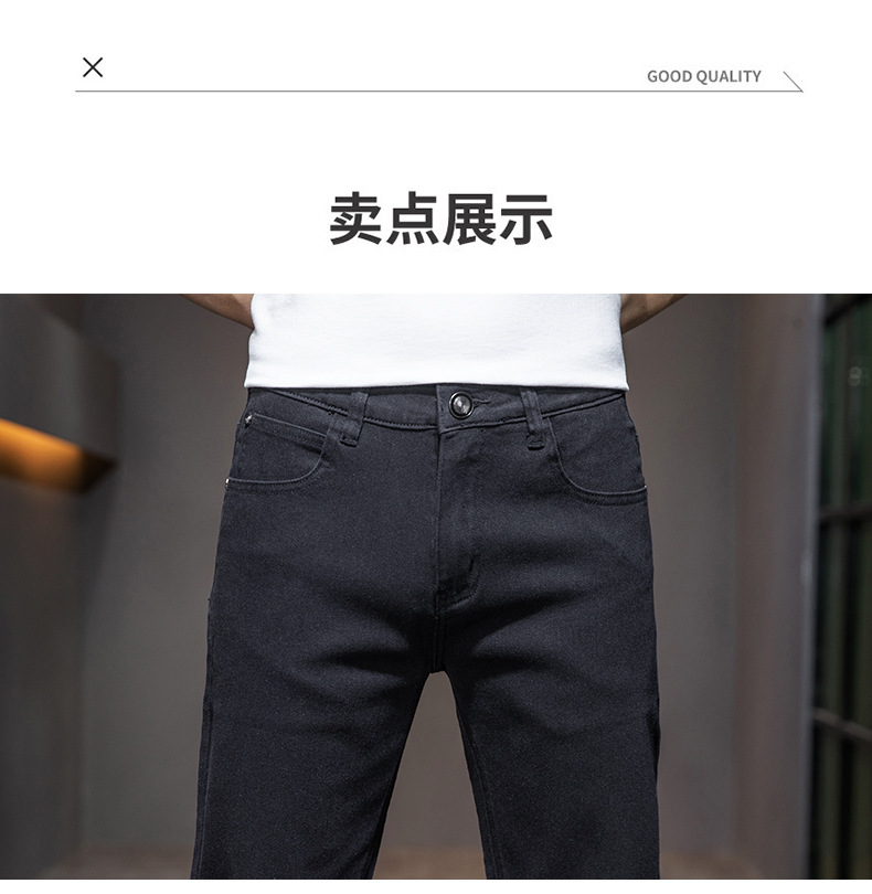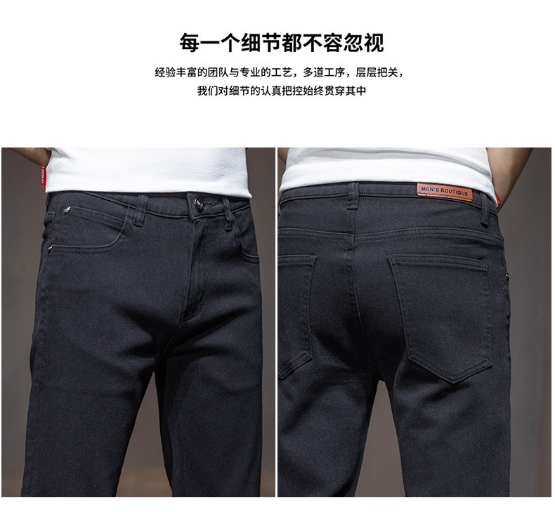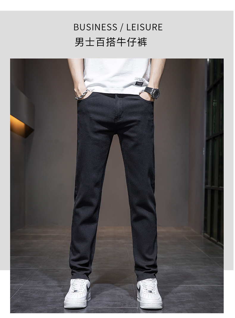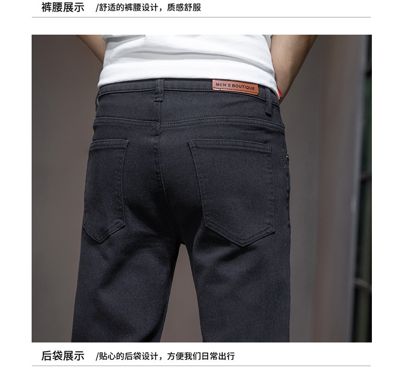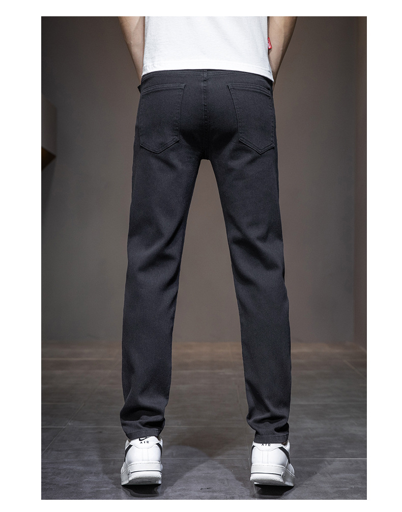 딱따구리 블랙 마이크로 탄성 슬림 핏 작은 스트레이트 솔리드 컬러 남성 캐주얼 패션 바지 트렌디 올 매치 청바지스토어 가기