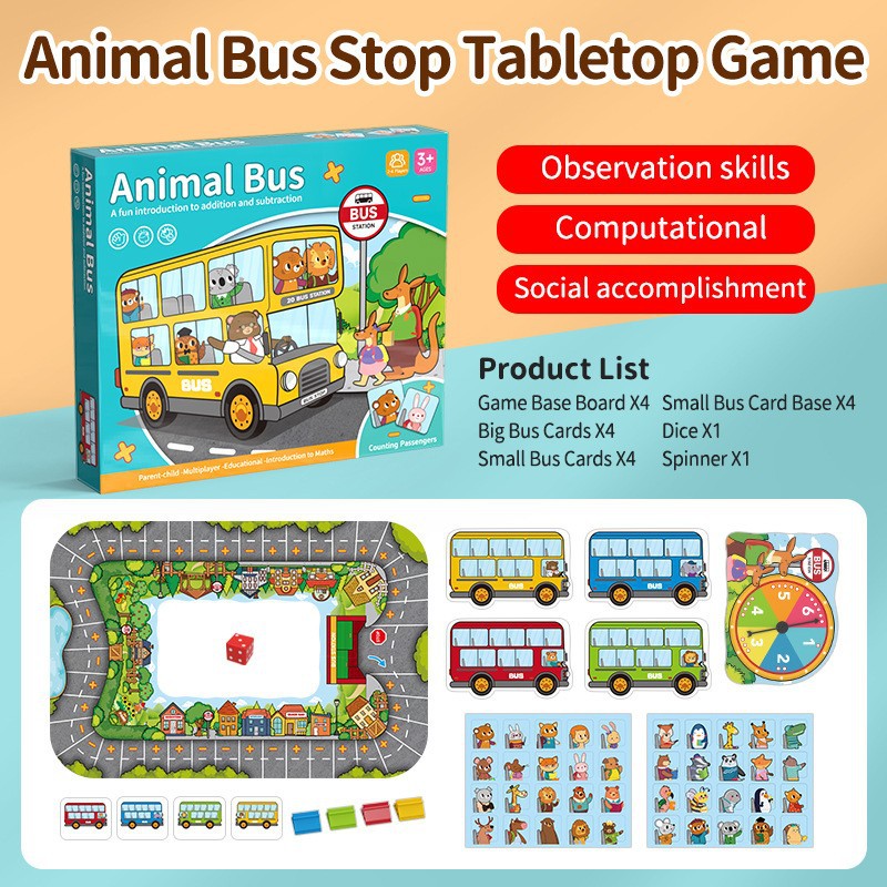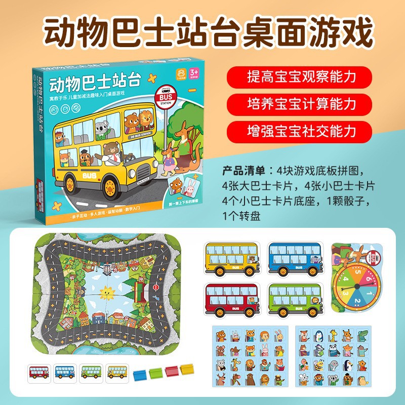 • 동물 버스 플랫폼 [퍼즐 4개 + 카드 12개 + 주사위 1개 + 턴테이블 1개] 중국 색상 상자