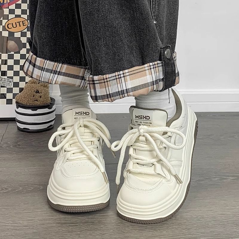 어린이를위한 틈새 디자인 흰색 신발 2025 봄과 여름 폭발 올 매치 도파민 트렌디 두꺼운 밑창 학생 캐주얼 보드 신발