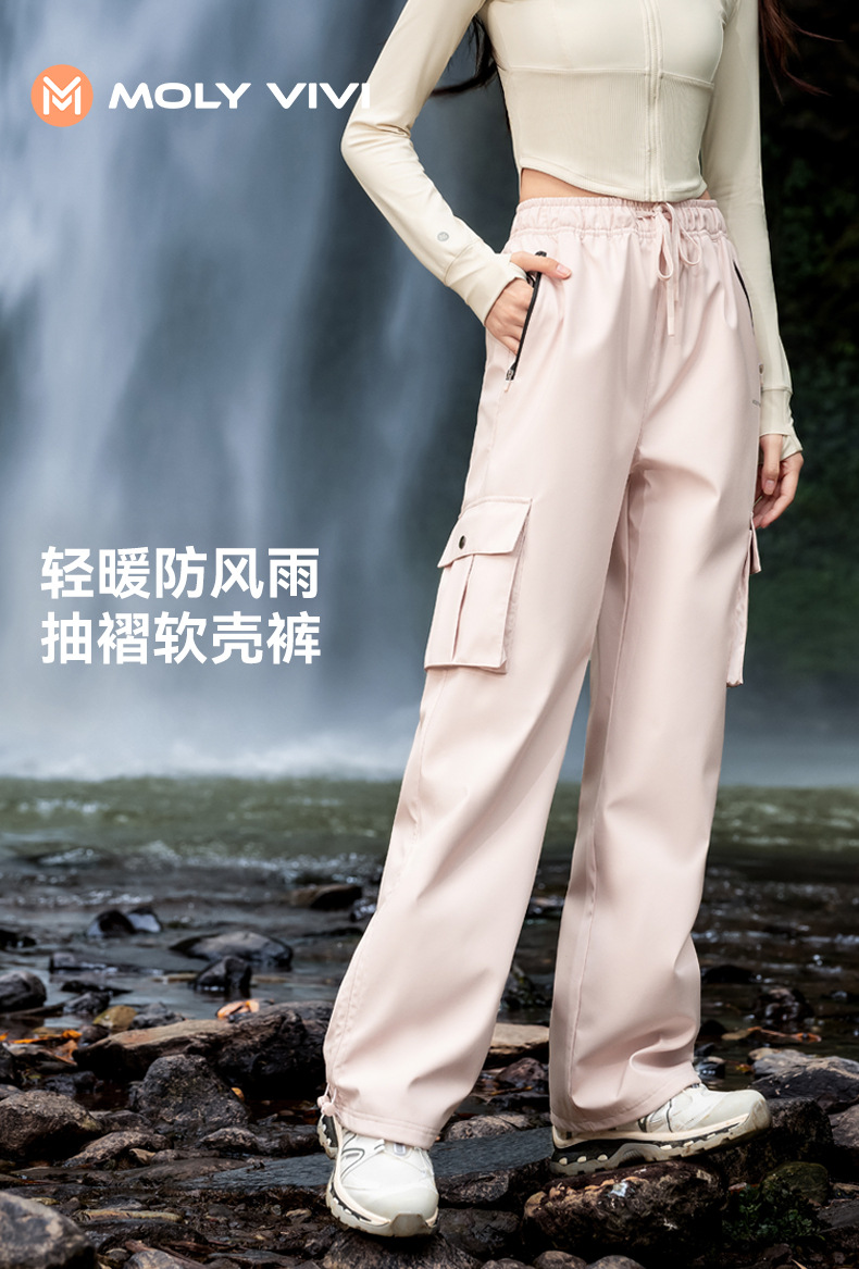MOLYVIVI 툴링 바람 충전 소프트 쉘 바지 여성의 2024 가을/겨울 새로운 방풍 방한 기모 하이킹 등반 바지스토어 가기