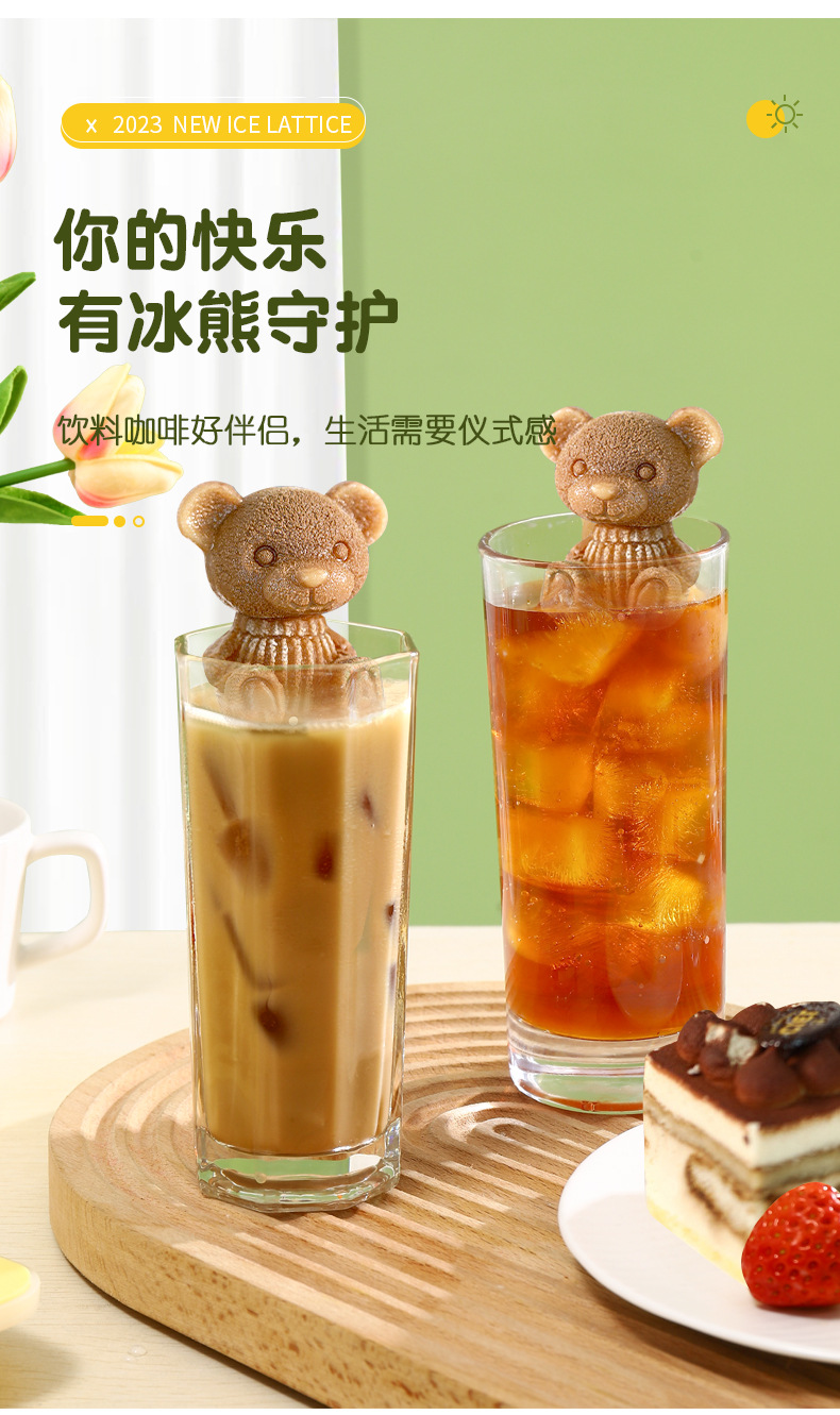 곰 아이스 큐브 금형 실리콘 아이스 트레이 인터넷 연예인 냉동 아이스 큐브 금형 곰 냉동 커피 우유 차 아이스 금형 아이스 가방