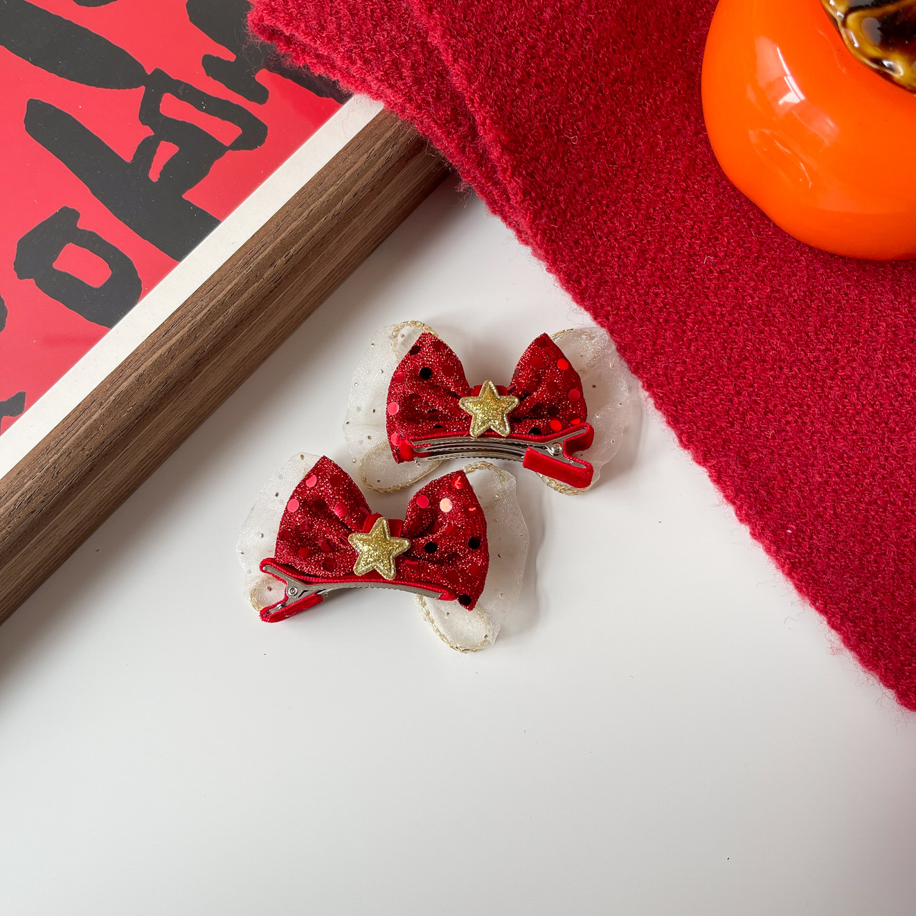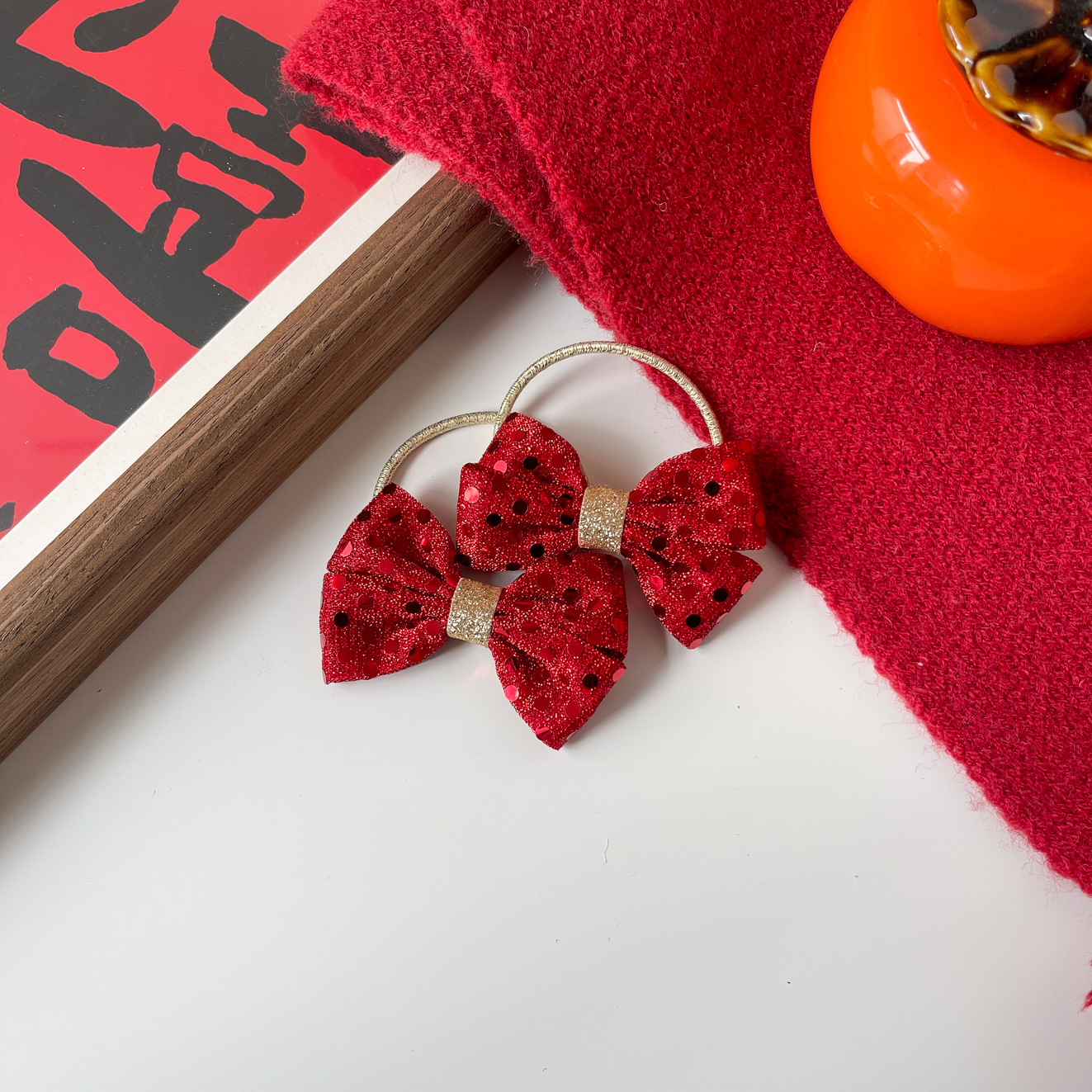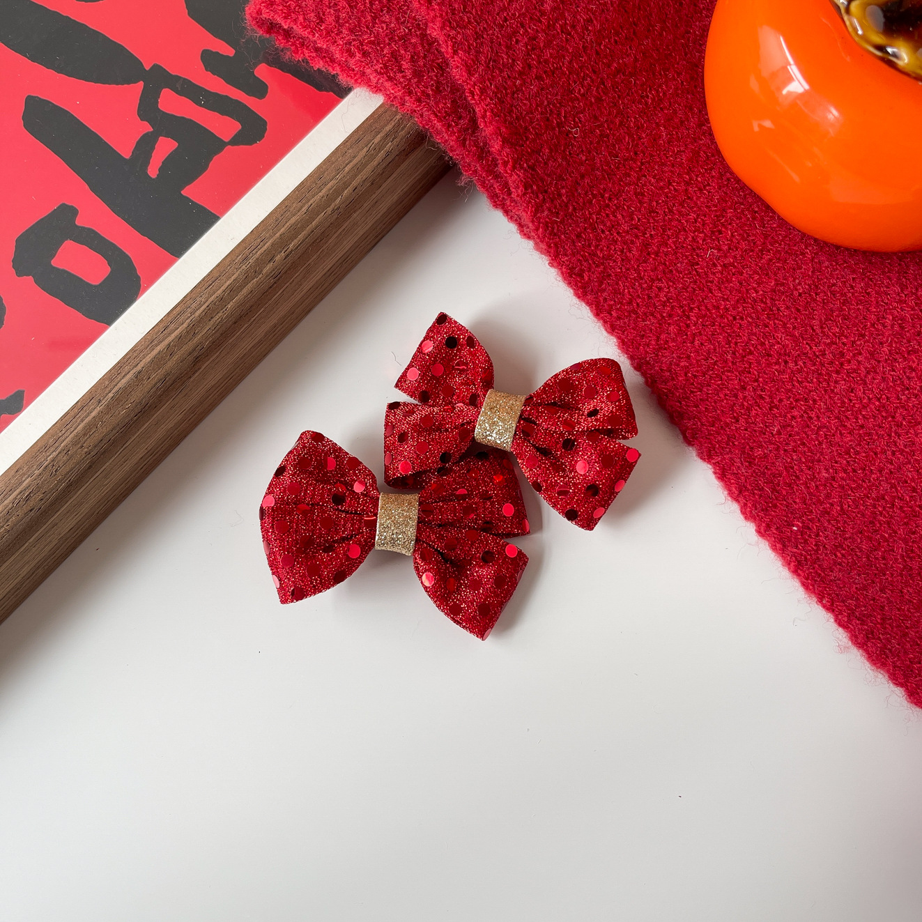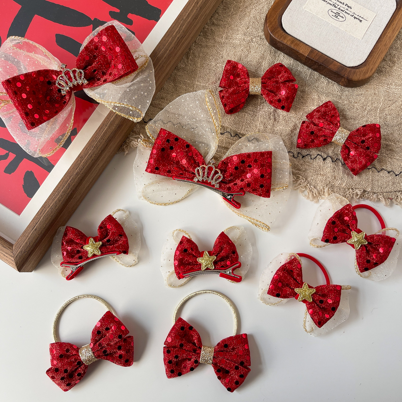 어린이 신년 빨간 활 머리핀 고급 감각 스팽글 나비 머리 반지 부모-자식 밝은 분말 크라운 머리핀 머리 액세서리