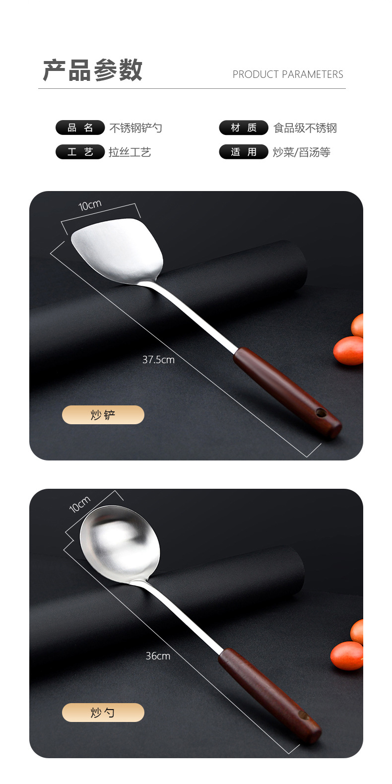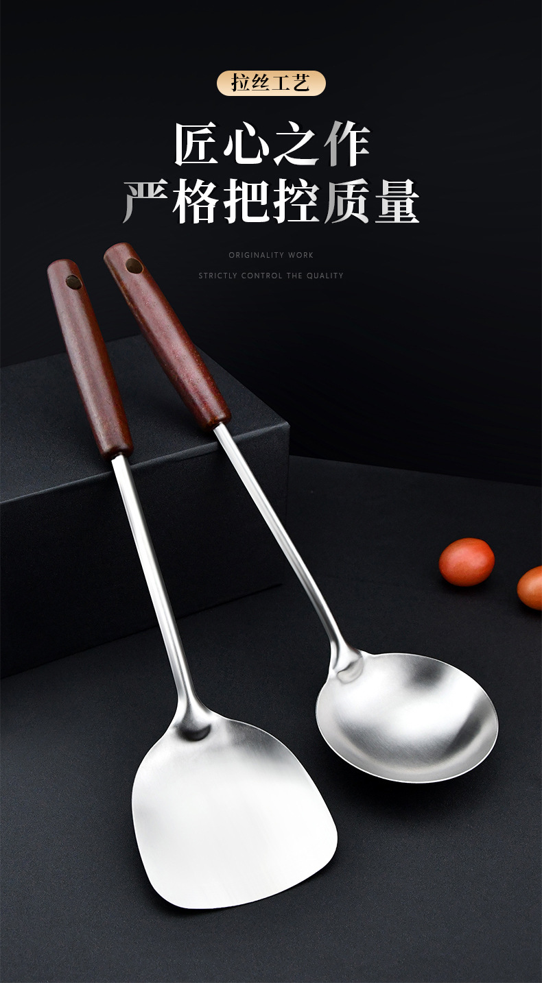 Kaiwang 스테인레스 스틸 냄비 삽 가정용 주방 볶음 숟가락 두꺼운 철 프라이팬 삽 색소 나무 손잡이 안티 스케일 스푼 스푼