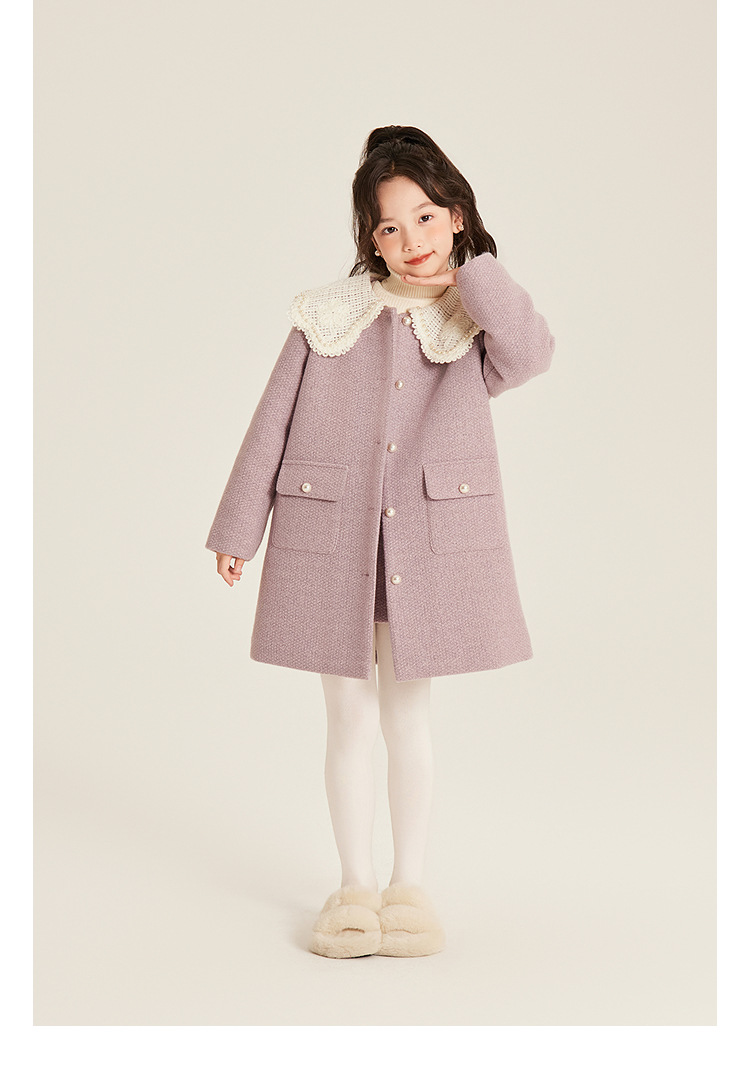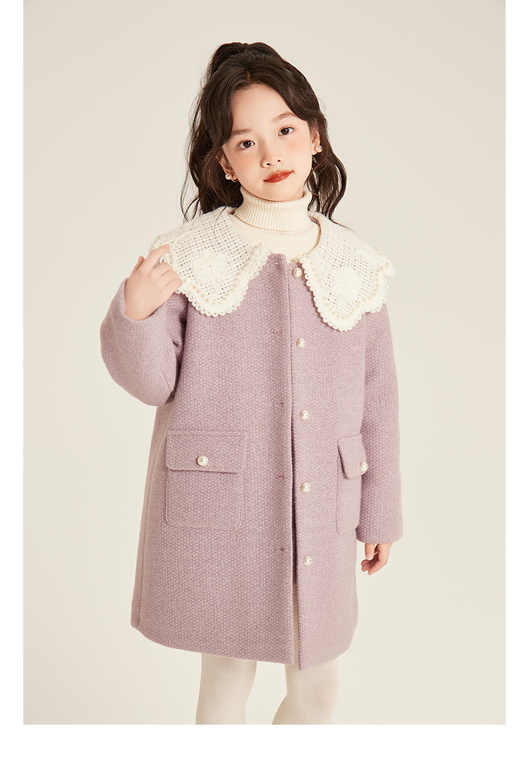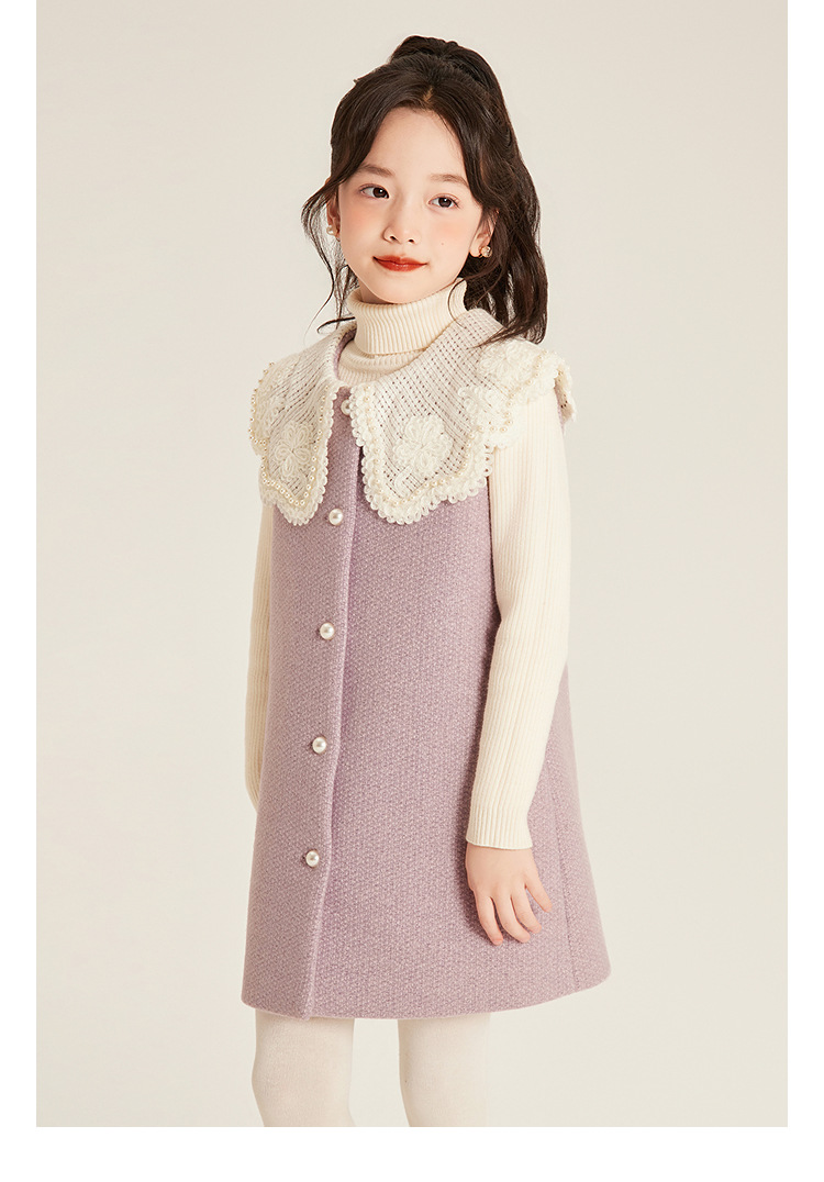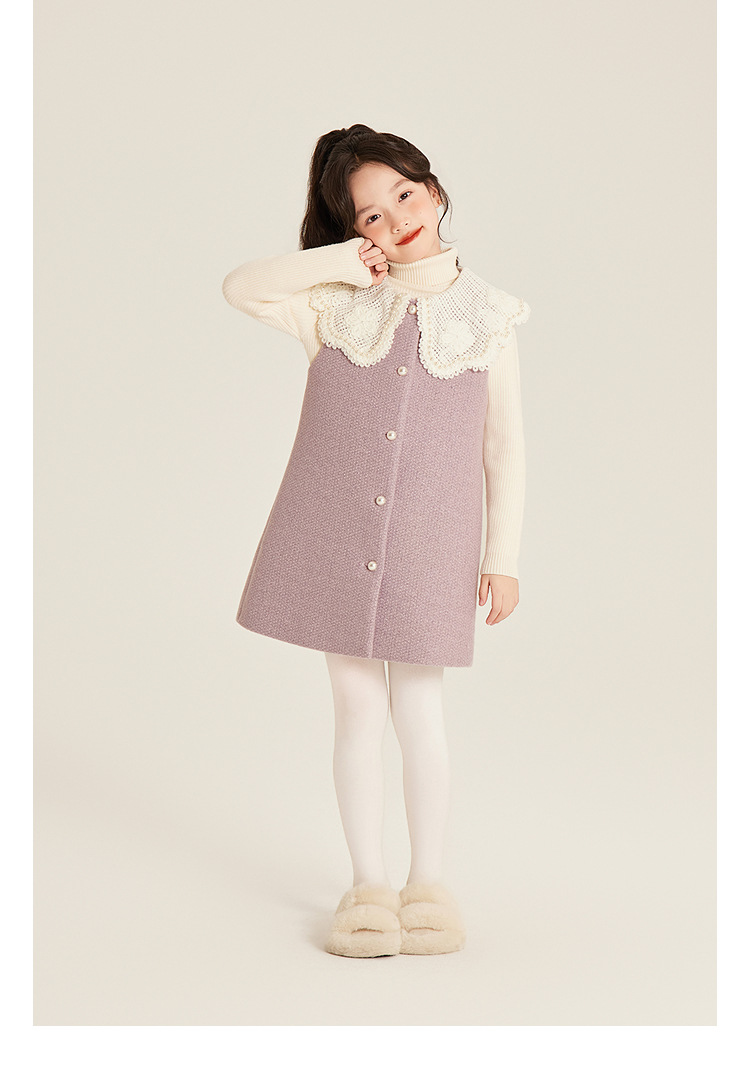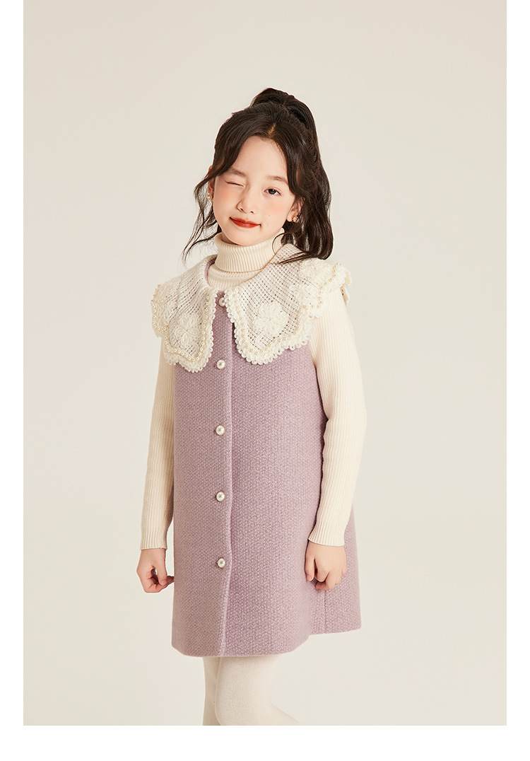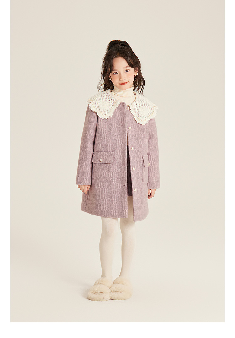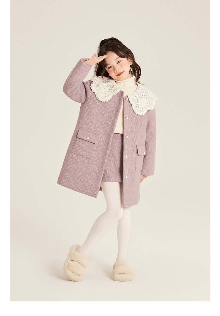 Amybaby Girl's 세트 겨울 2024 새로운 프랑스 스타일 샤넬 브레스트 대조 레이스 자켓 빅 스커트스토어 가기