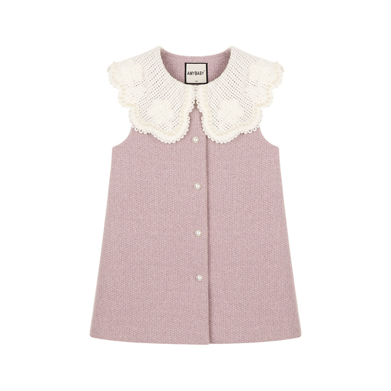 Amybaby Girl's 세트 겨울 2024 새로운 프랑스 스타일 샤넬 브레스트 대조 레이스 자켓 빅 스커트