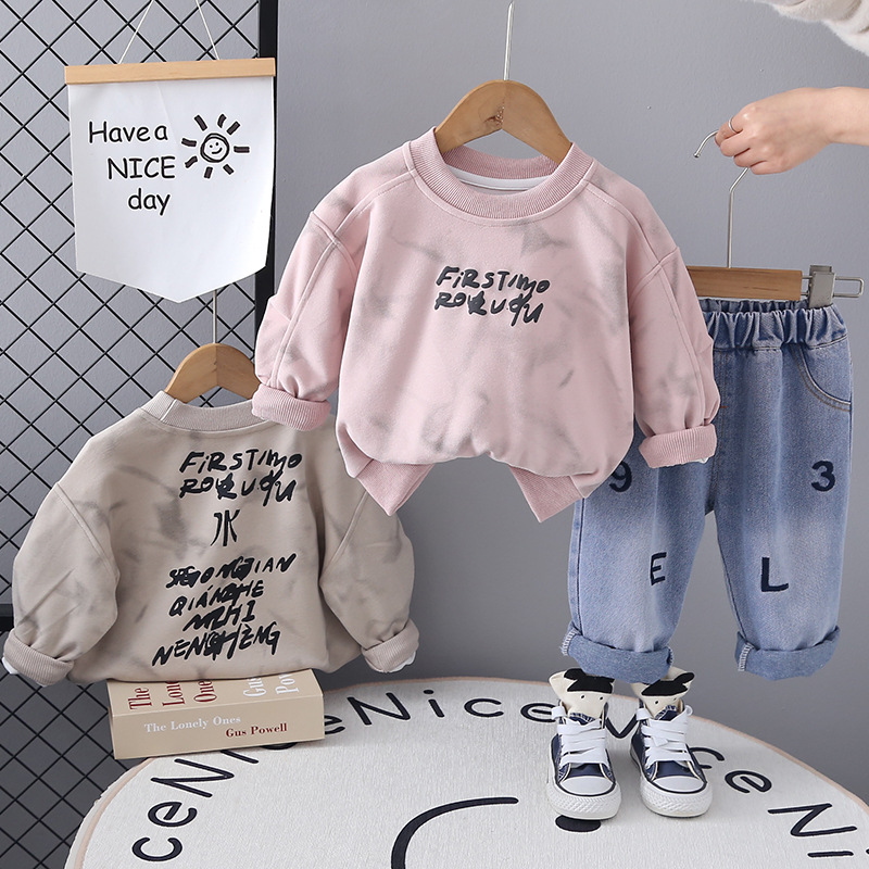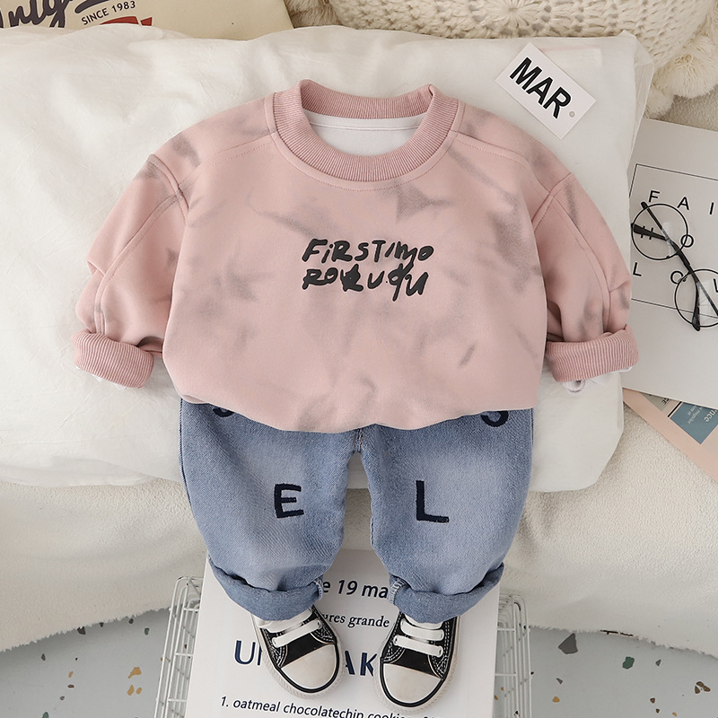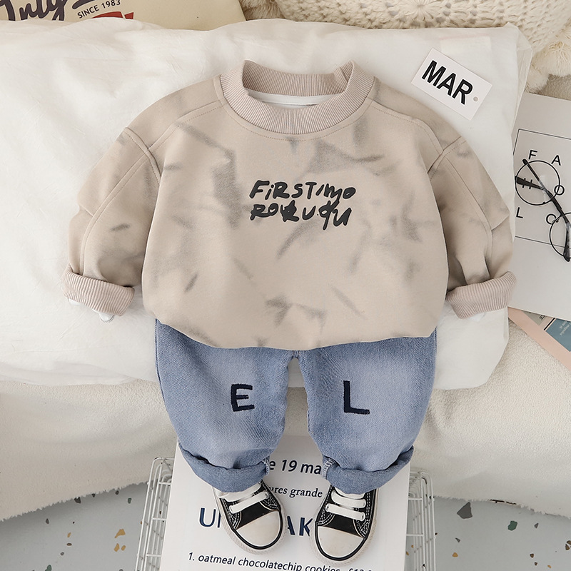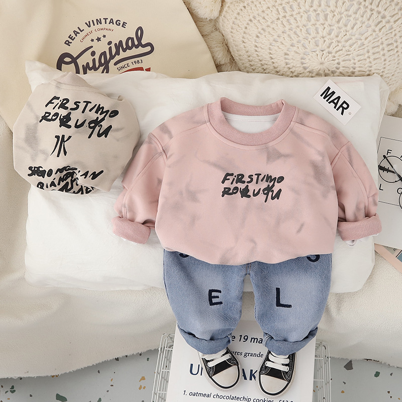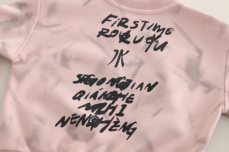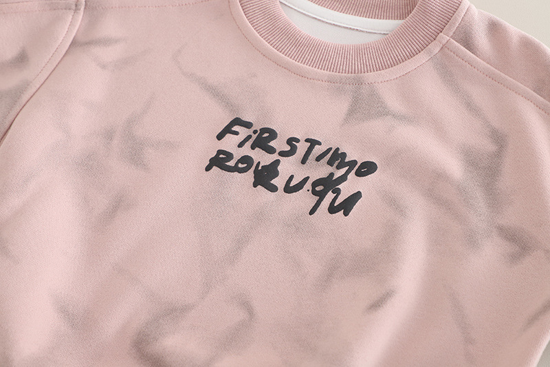 봄 2025 새로운 라운드 넥 땀 디지털 긴 소매 타이-염료 유행 올 매치 청바지 투피스 트렌디