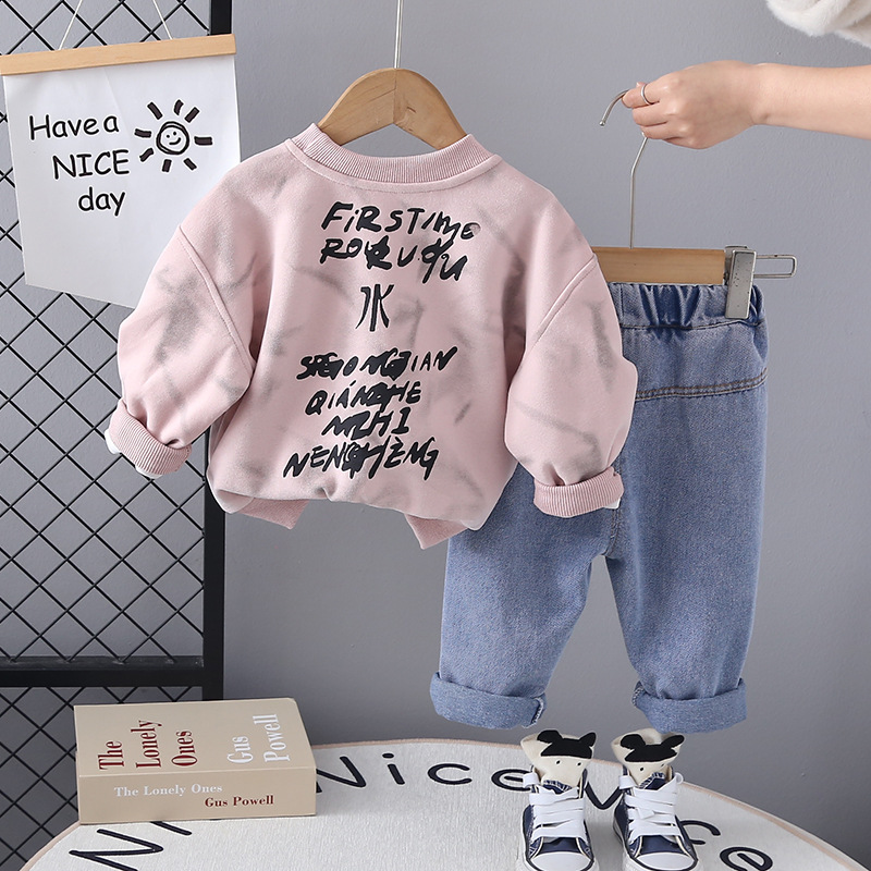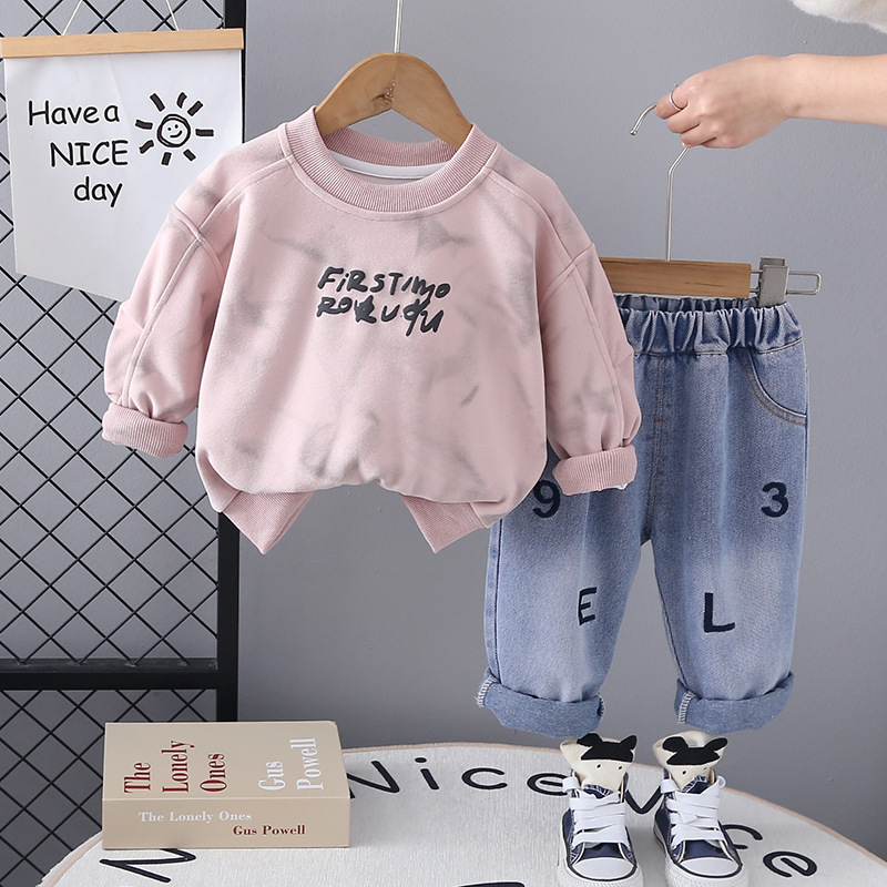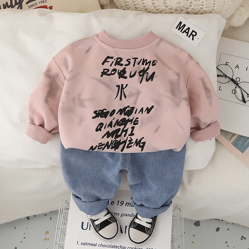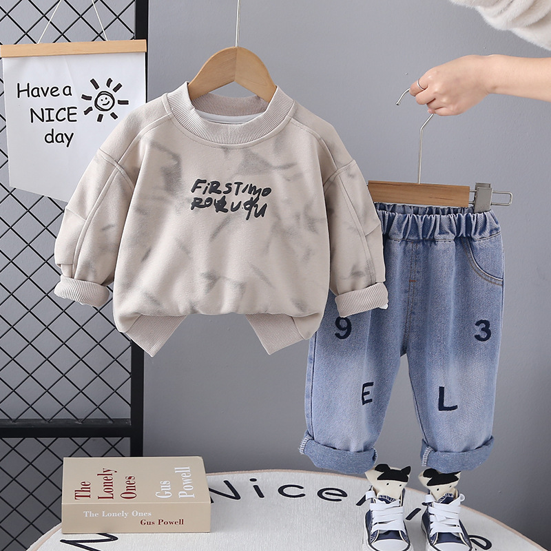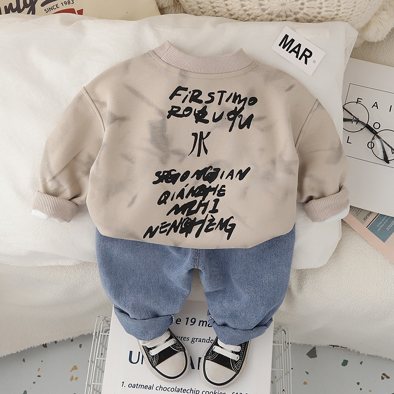 봄 2025 새로운 라운드 넥 땀 디지털 긴 소매 타이-염료 유행 올 매치 청바지 투피스 트렌디