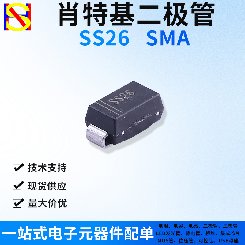 SS26贴片肖特基二极管SMA SR260 2A/60V一站式电子元器件BOM配单