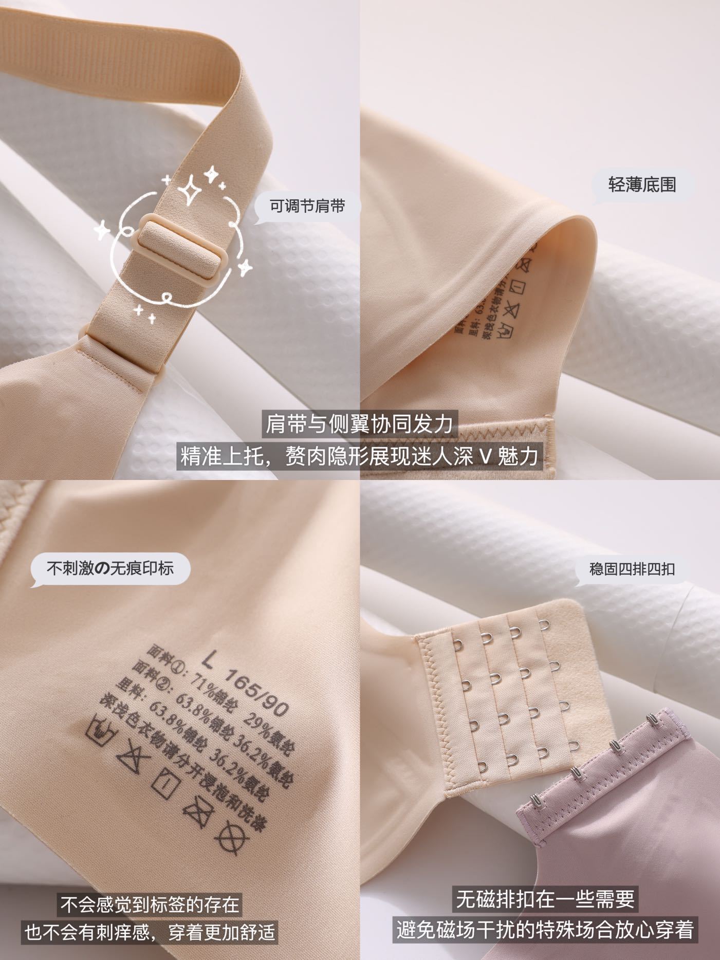 큰 가슴은 작은 노 컷 속옷 여성의 얇은 고정 컵 스포츠 뷰티 백 풀업 무테 브라스토어 가기