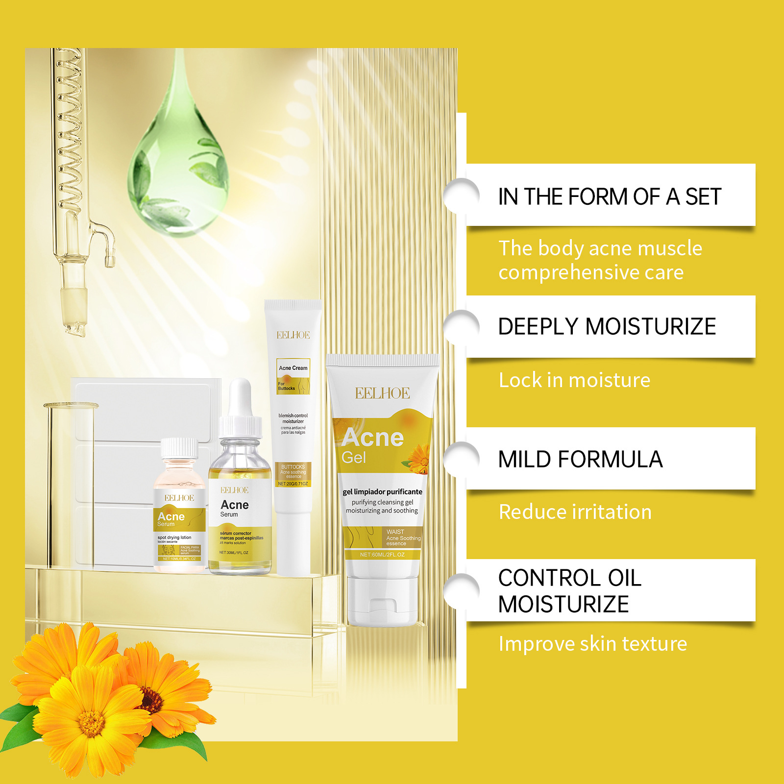 EELHOE 여드름 근육 피부 관리 세트 피부 관리 여드름 근육 부드러운 피부 보습 피부 관리