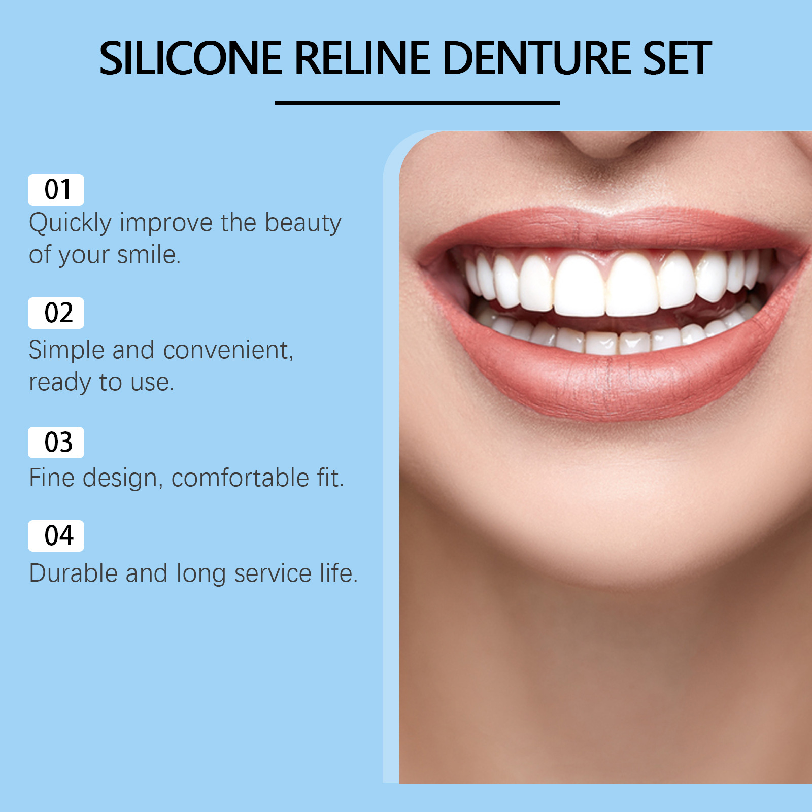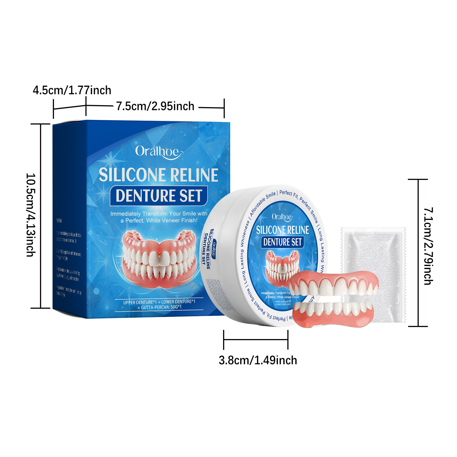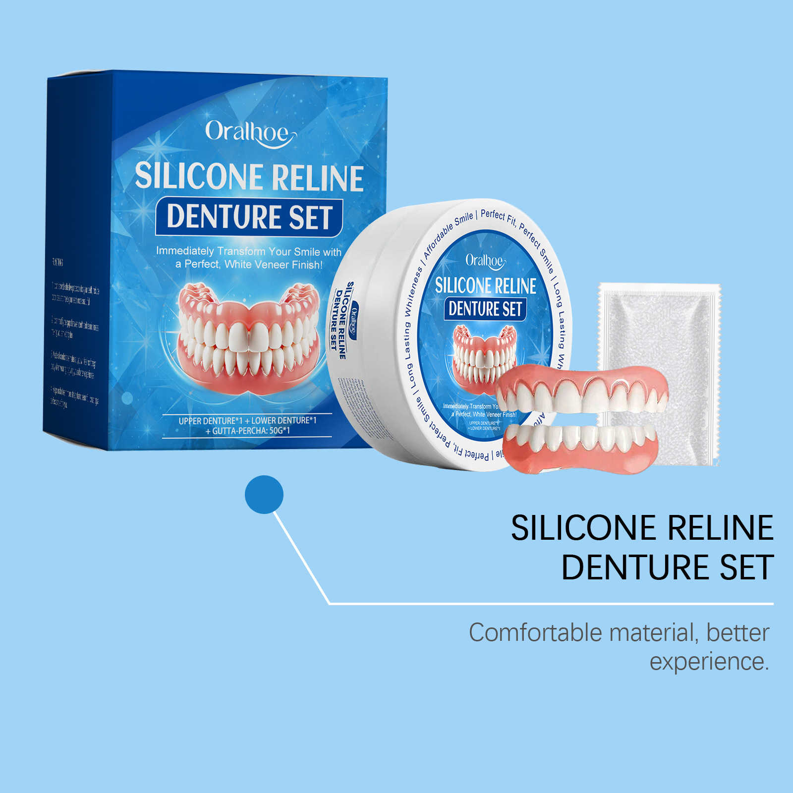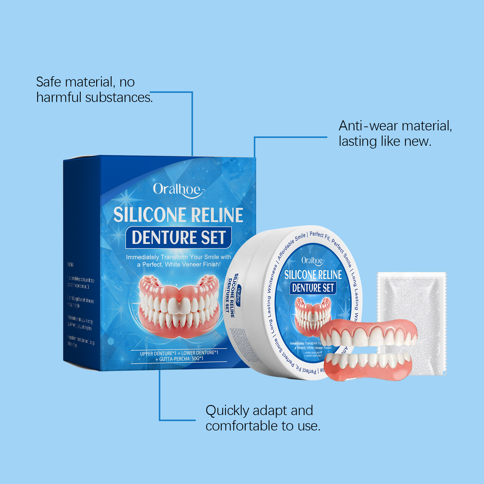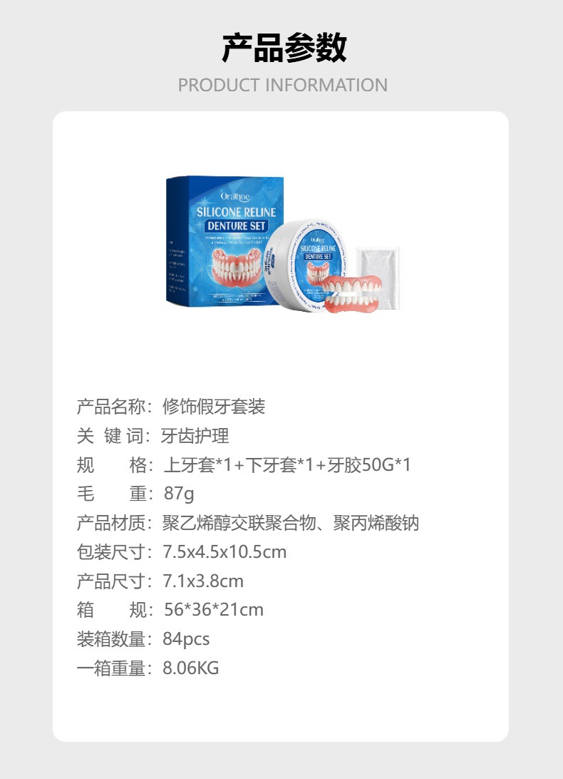 ORALHOE 수정 된 틀니 세트 강화 미소 컴포트 수정 된 치아 크레딧 아름다운 간호 세트