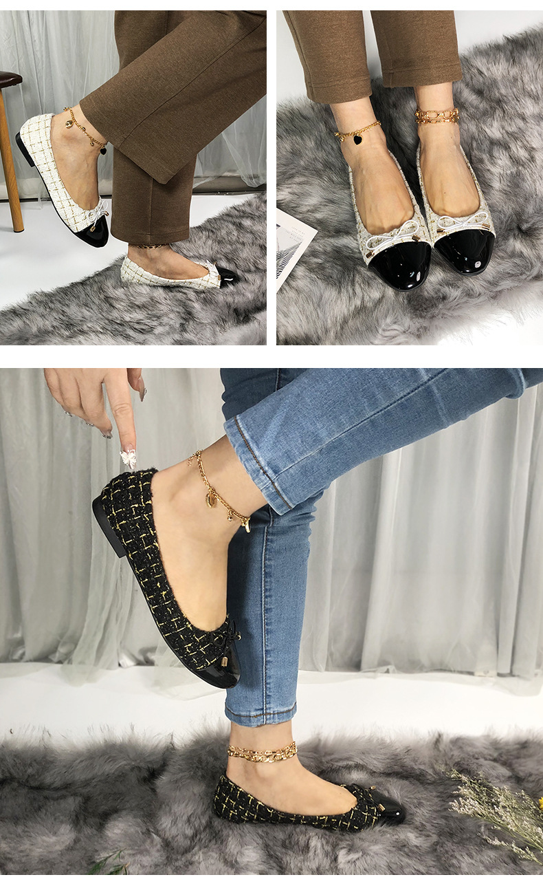 국경 간 샤넬 스타일 라운드 토 싱글 레이어 신발 여성의 새로운 도착 얕은 입 올 매치 플랫 슈즈 이브닝 스타일 올 매치 편안한 밀크 슈즈스토어 가기