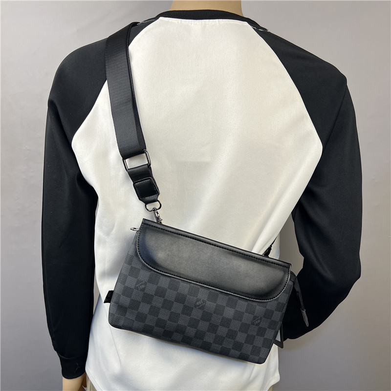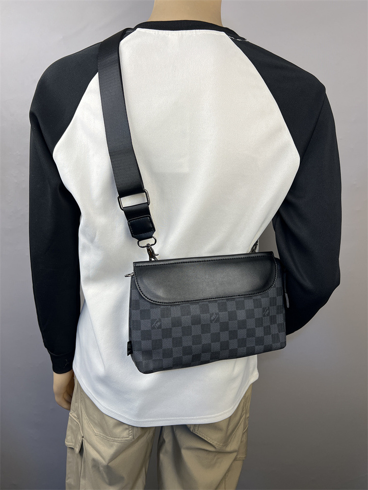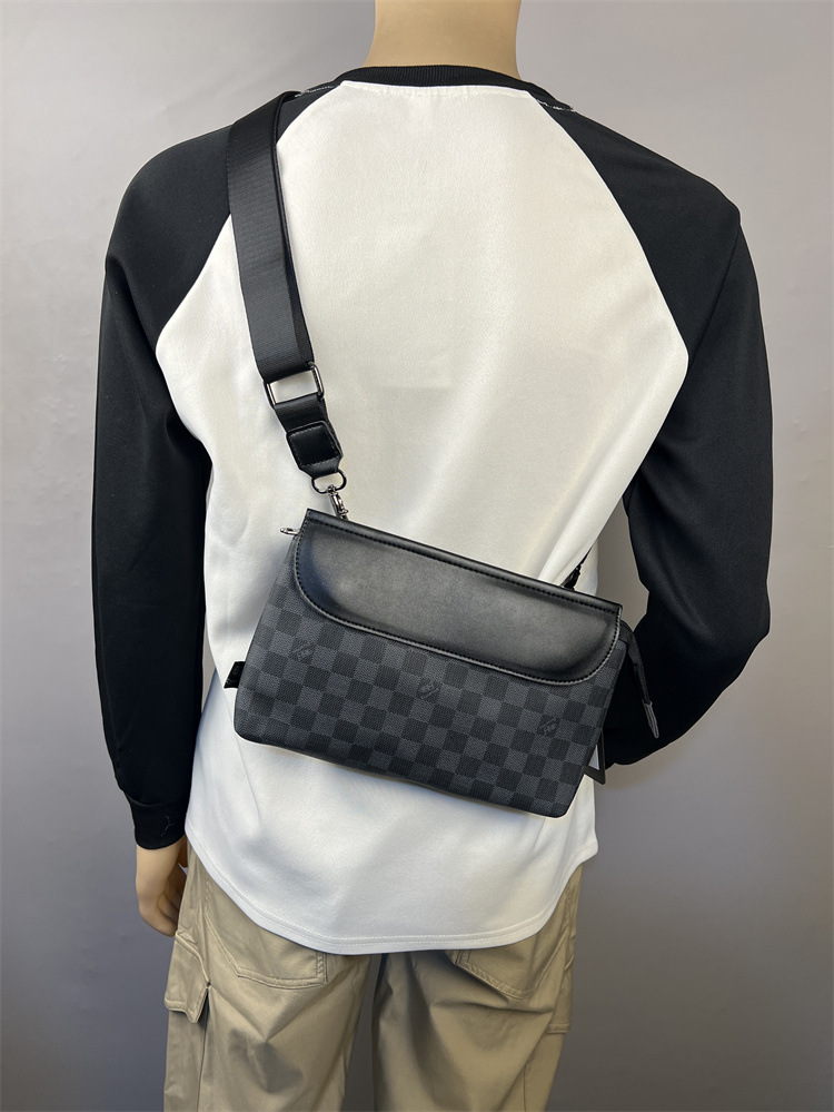 2025 새로운 유행 크로스 바디 격자 무늬 작은 배낭 유행 남성 체스 판 싱글 숄더 백 플립 커버 남성 크로스 숄더 백