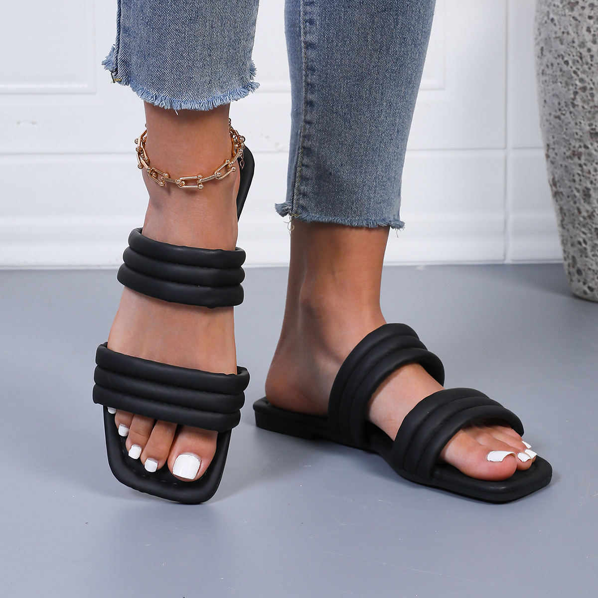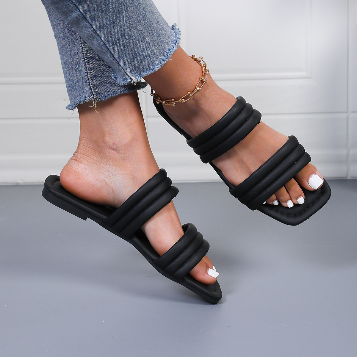 유럽과 미국의 대외 무역 슬리퍼 여성 겉옷 2025 여름 새로운 플랫 힐 스퀘어 헤드 슬리퍼 플러스 사이즈 여성 신발 소원