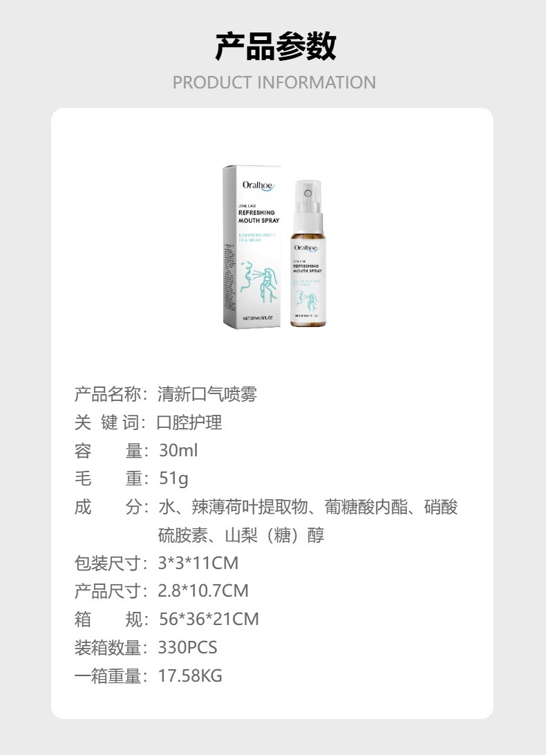 ORALHOE 신선한 호흡 스프레이 치아 얼룩 타타르 깊은 청소 깨끗한 맛 신선한 입 관리 스프레이