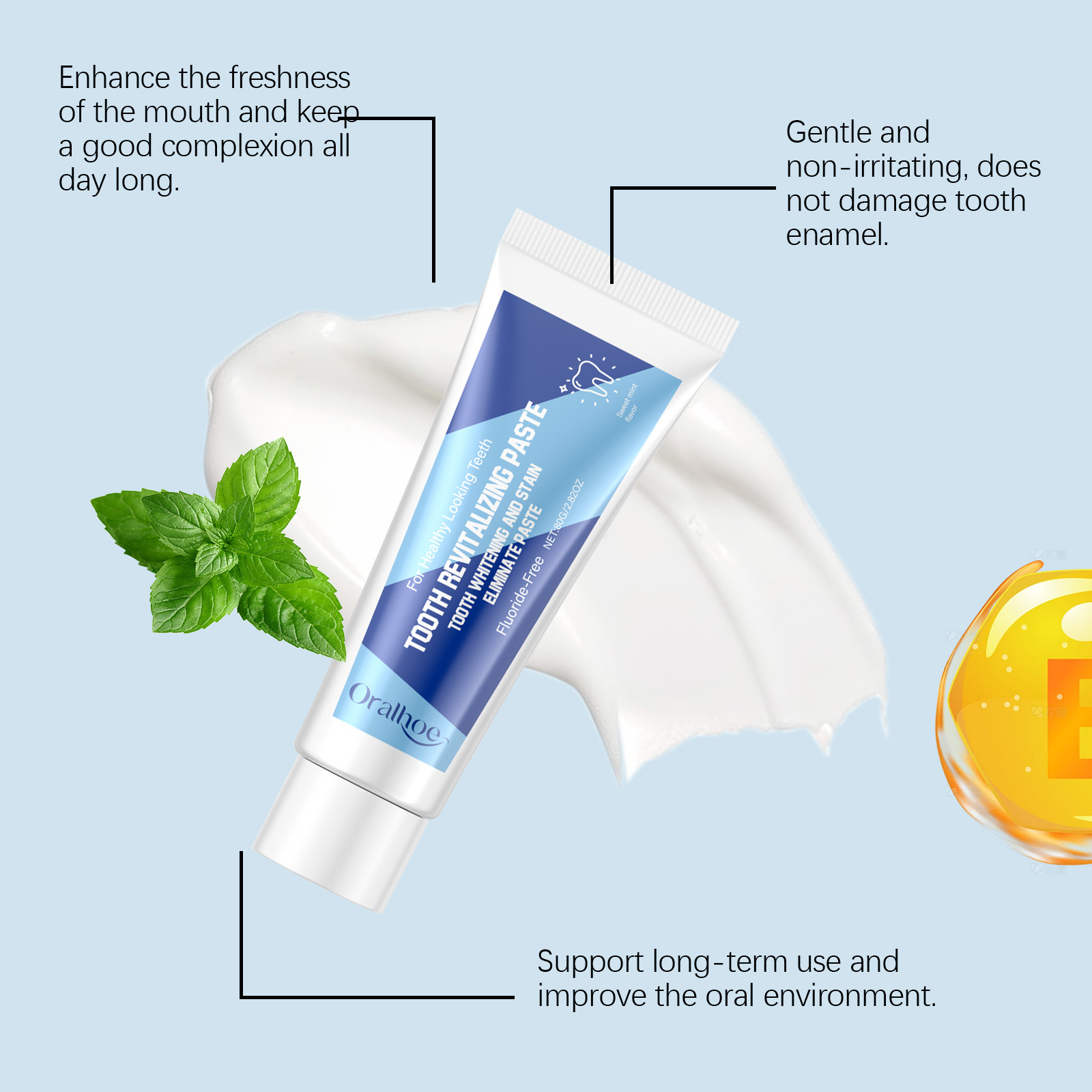ORALHOE 깊은 청소 밝은 흰색 치약 치아 청소 오염 제거 깨끗한 노란색 치아 타르타르 신선한 구강 관리