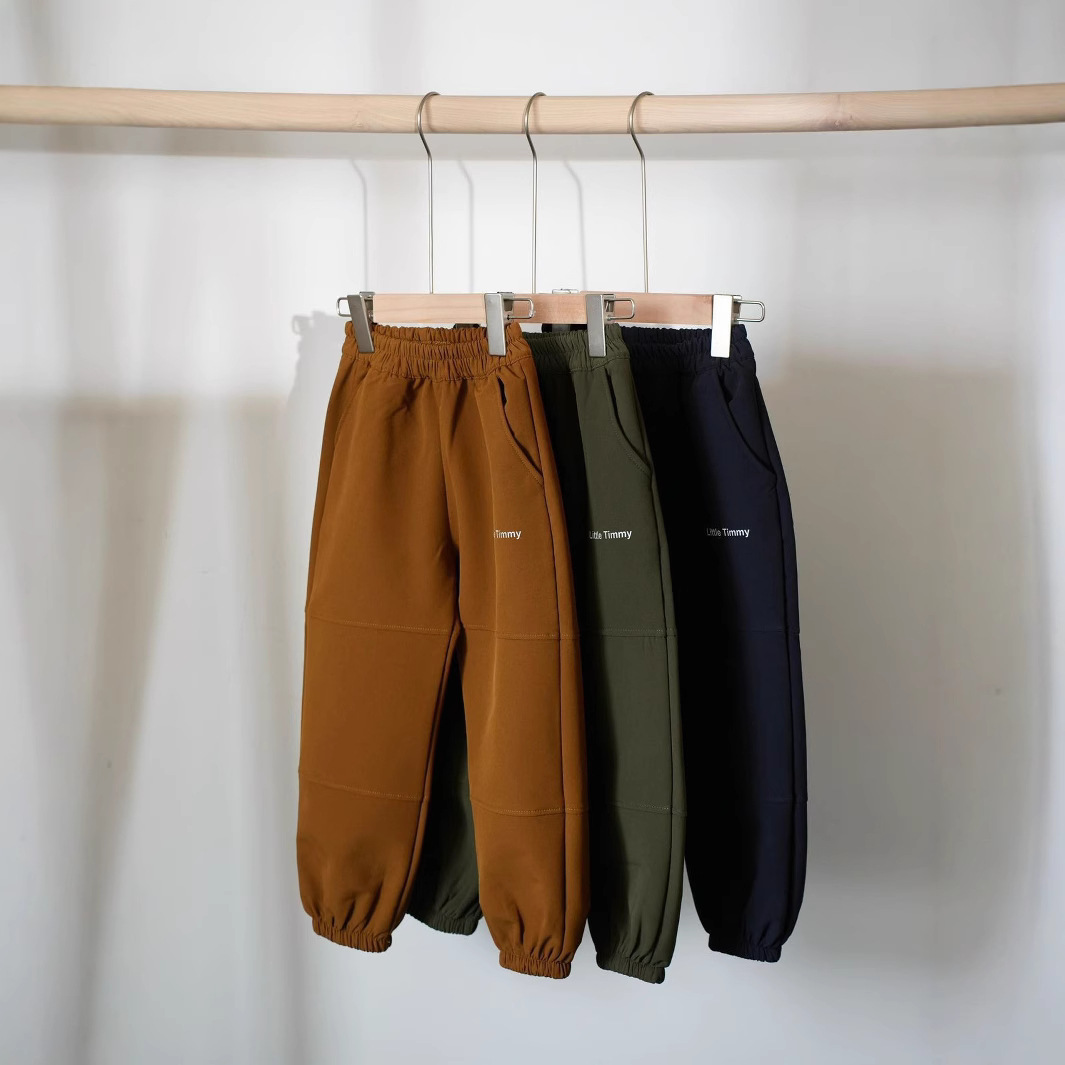 2024 가을과 겨울 새로운 남성과 여성의 어린이 편지 스타일 인쇄 기모 캐주얼 하이 허리 탄성 더블 포켓 어린이 바지스토어 가기