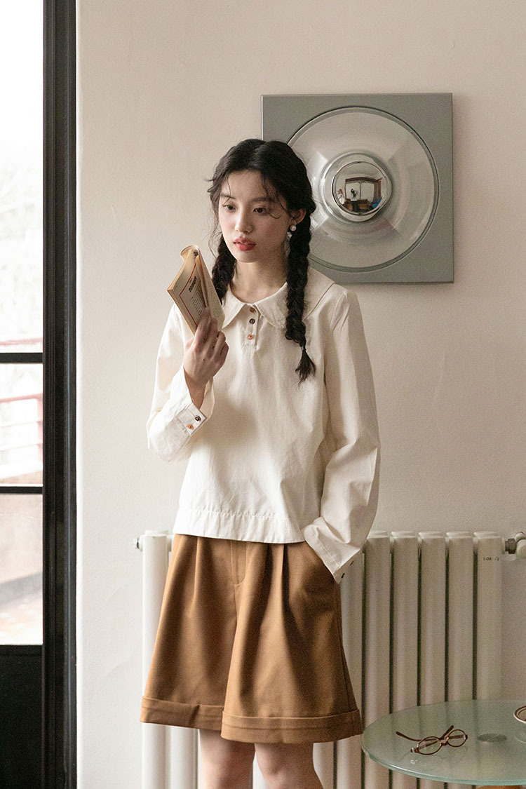 2025 봄 새로운 일본 스타일 레트로 캐주얼 높은 허리 슬리밍 느슨한 곡선 가장자리 디자인 여성을위한 모든 경기 넓은 다리 반바지