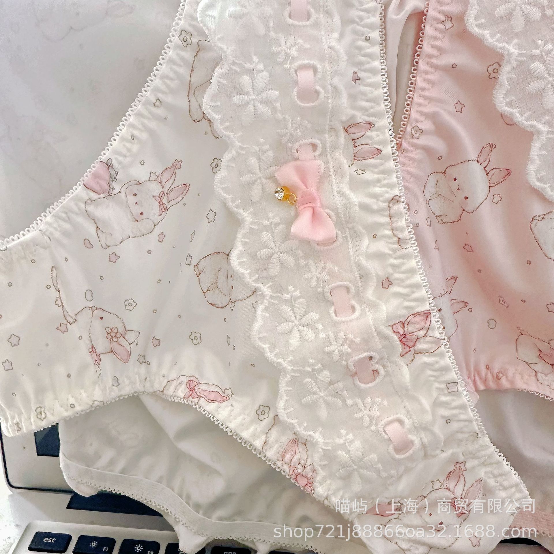 일본 스타일 달콤한 중간 허리 레이스 속옷 소녀의 레이스 편안한 통기성 여행 플러스 사이즈 귀여운 토끼 학생스토어 가기