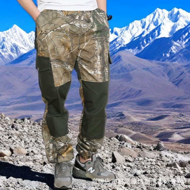 등산 위장 낚시 정글 내구성 높은 루즈핏 바지 남성용 신축성 허리 생체모방 나뭇잎 위장 바지