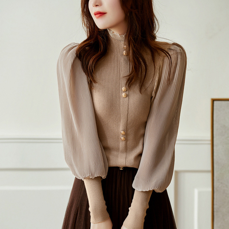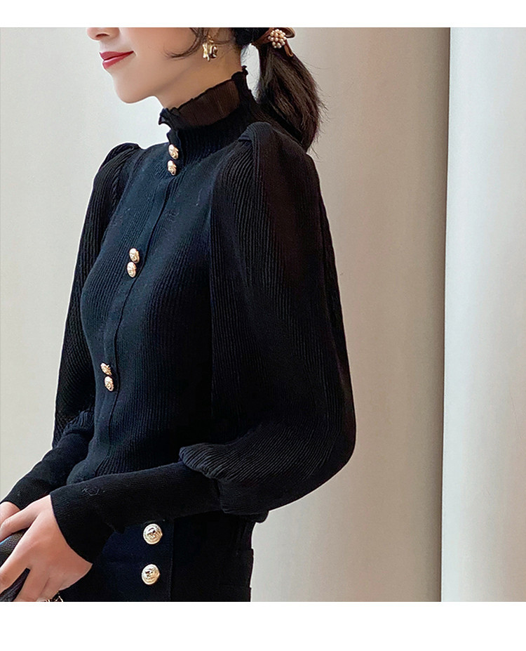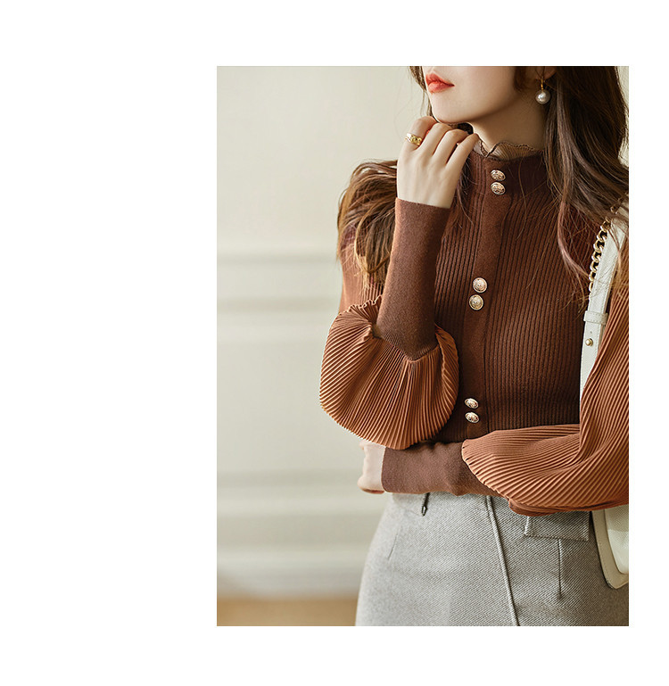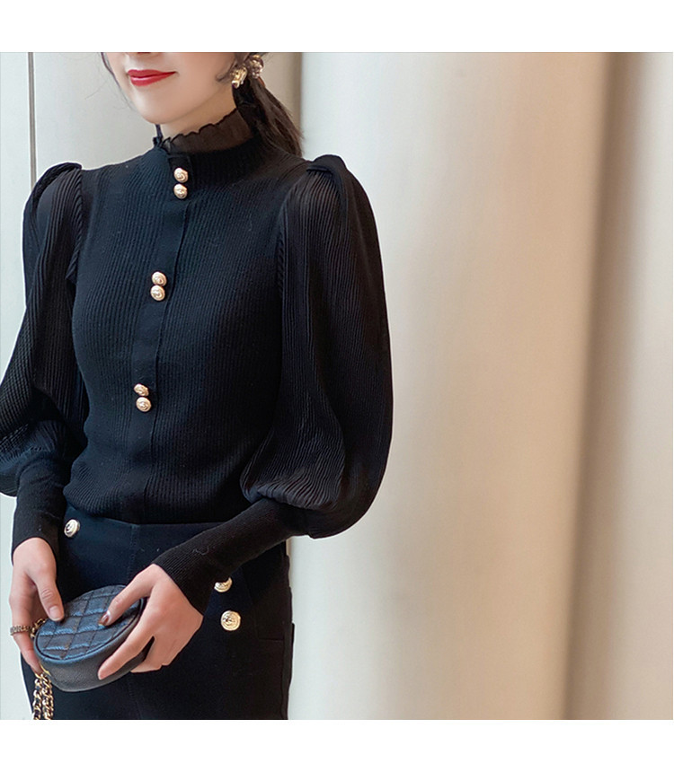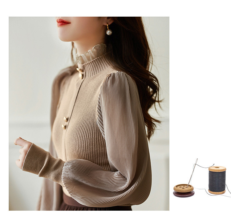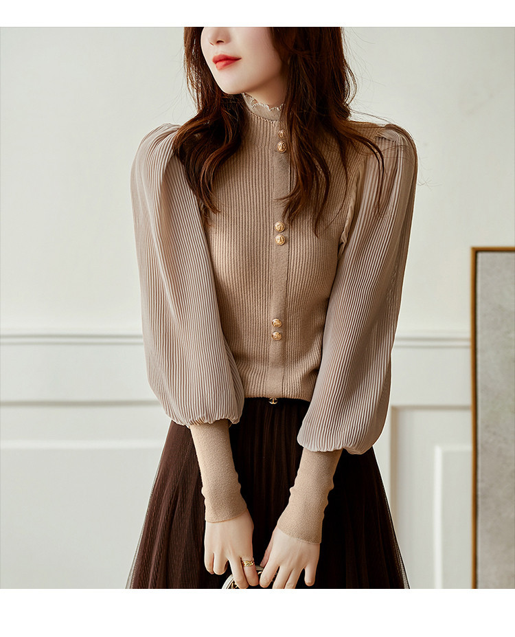 러플 쉬폰 패치 워크 스웨터 여성 2025 봄 새로운 스타일 서양식 탑 퍼프 슬리브 스웨터스토어 가기