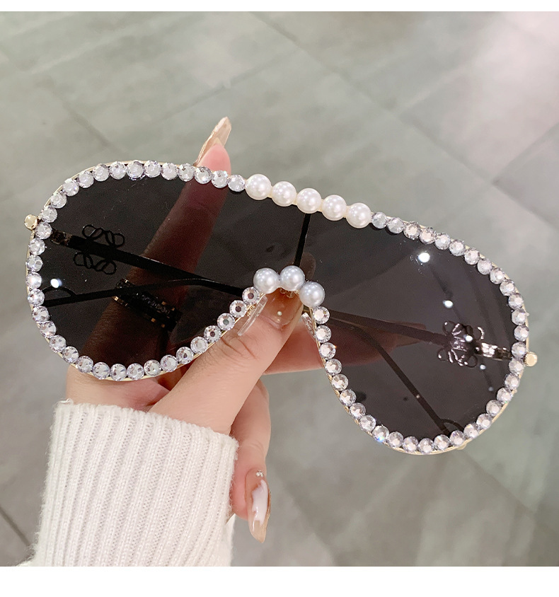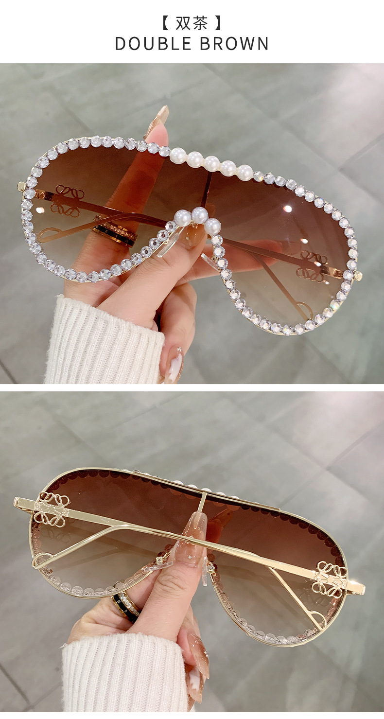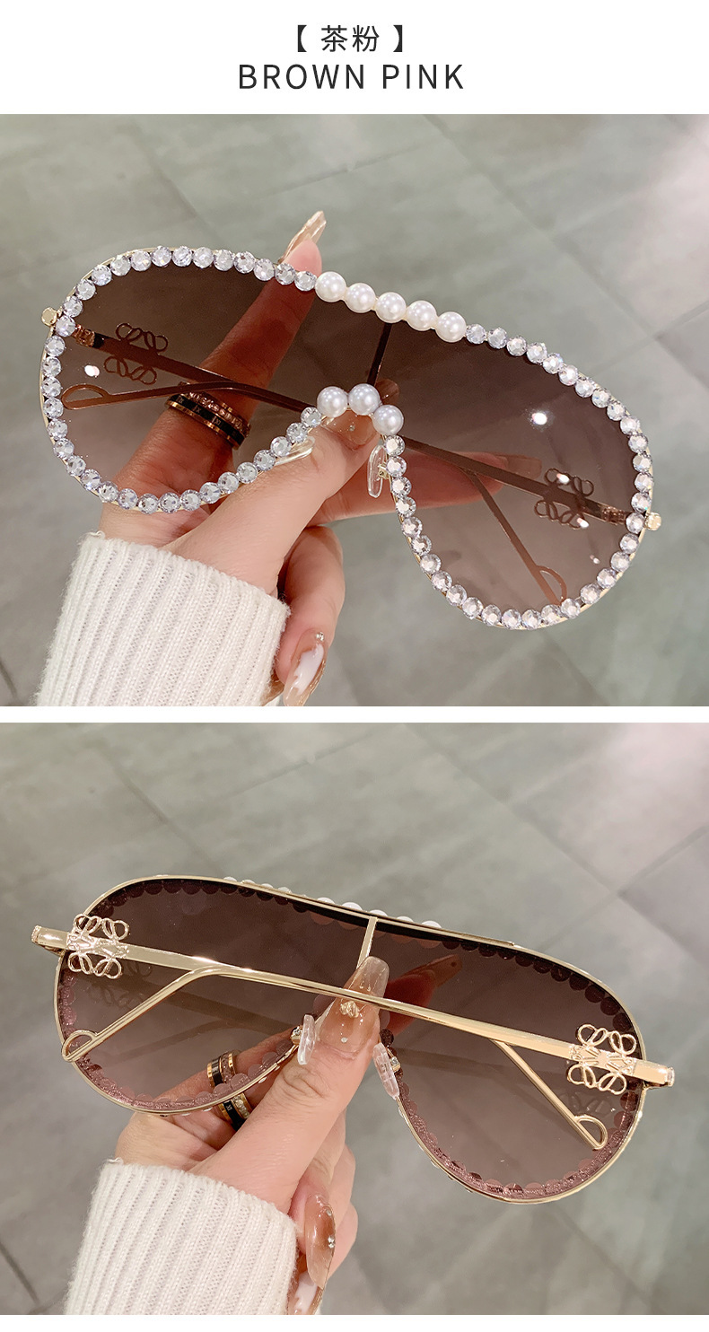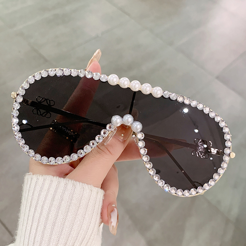 2025 새로운 국경 안경 원피스 대형 프레임 다이아몬드가 박힌 선글라스 여성 하이 레벨 센스 모델 촬영 쇼사이드 선글라스스토어 가기