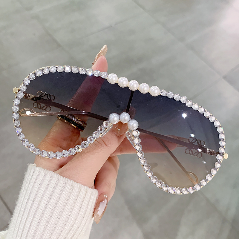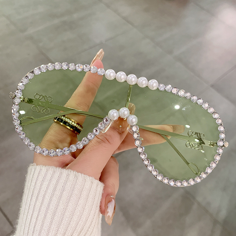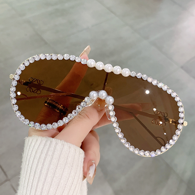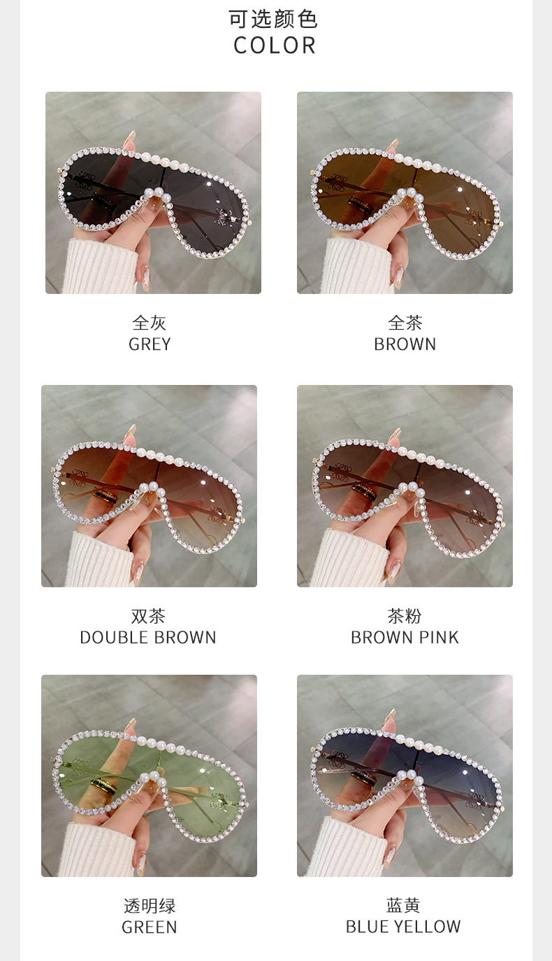 2025 새로운 국경 안경 원피스 대형 프레임 다이아몬드가 박힌 선글라스 여성 하이 레벨 센스 모델 촬영 쇼사이드 선글라스스토어 가기