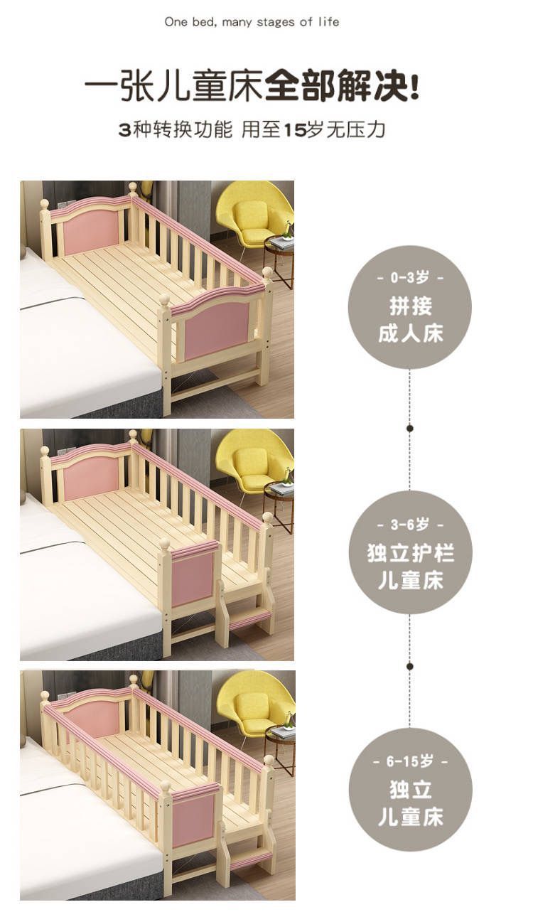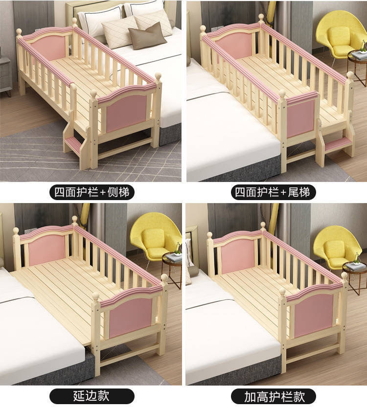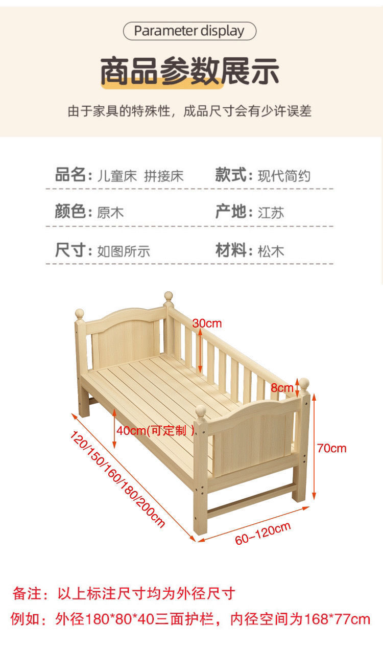 단단한 나무 침대 측면 넓은 어린이 침대 접합 넓은 보호대 침대 싱글 침대 아기 소년 큰 침대 소녀 침대스토어 가기