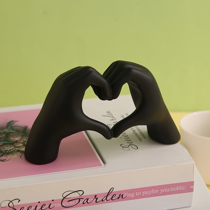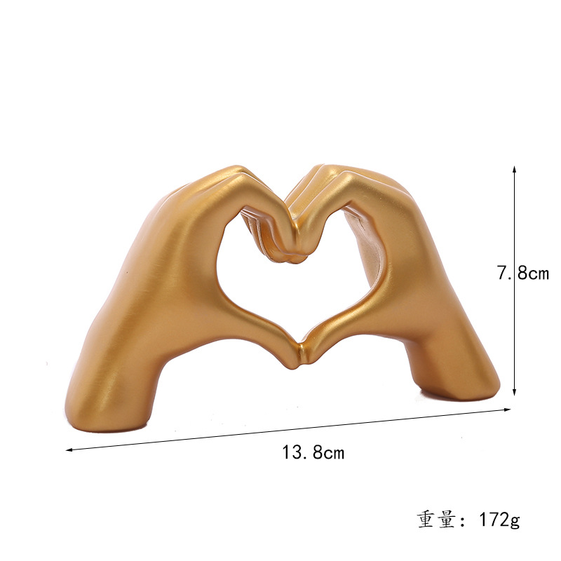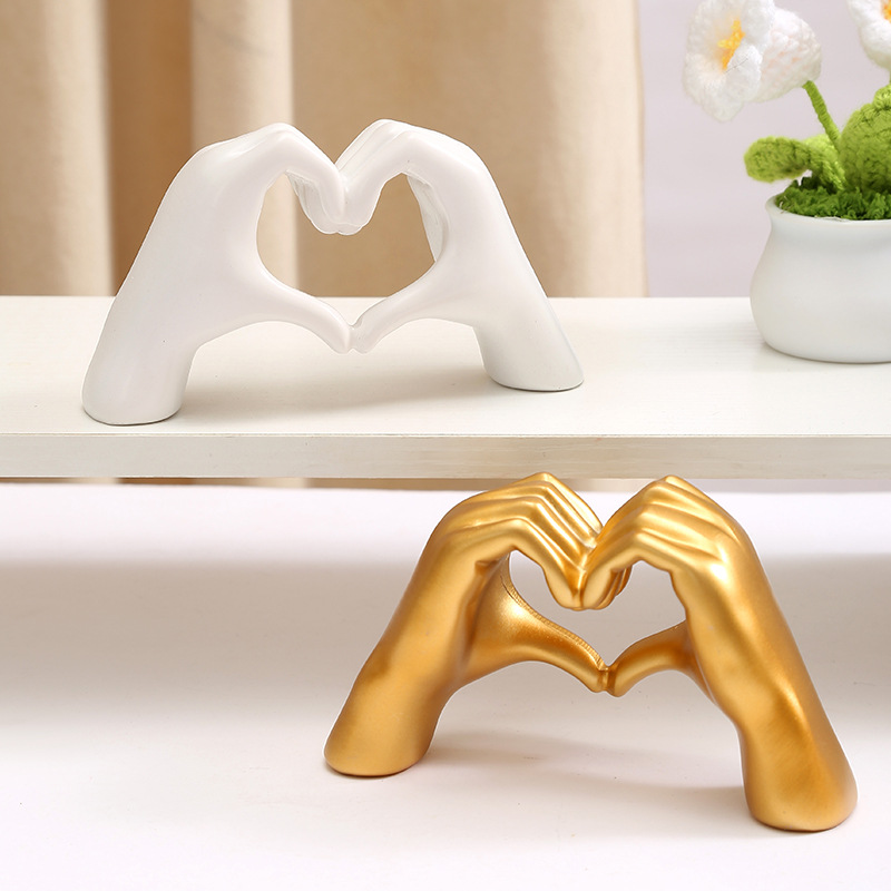 국경 창조적 인 황금 손 하트 모양의 세라믹 장식품 데스크탑 수지 사무실 장식 사랑 수지 공예