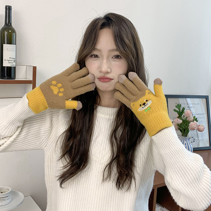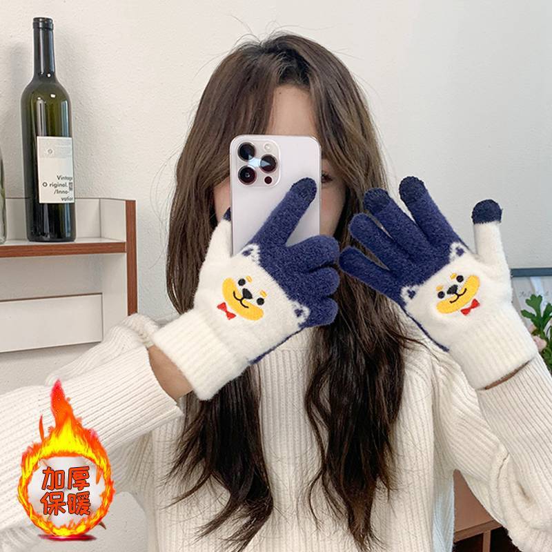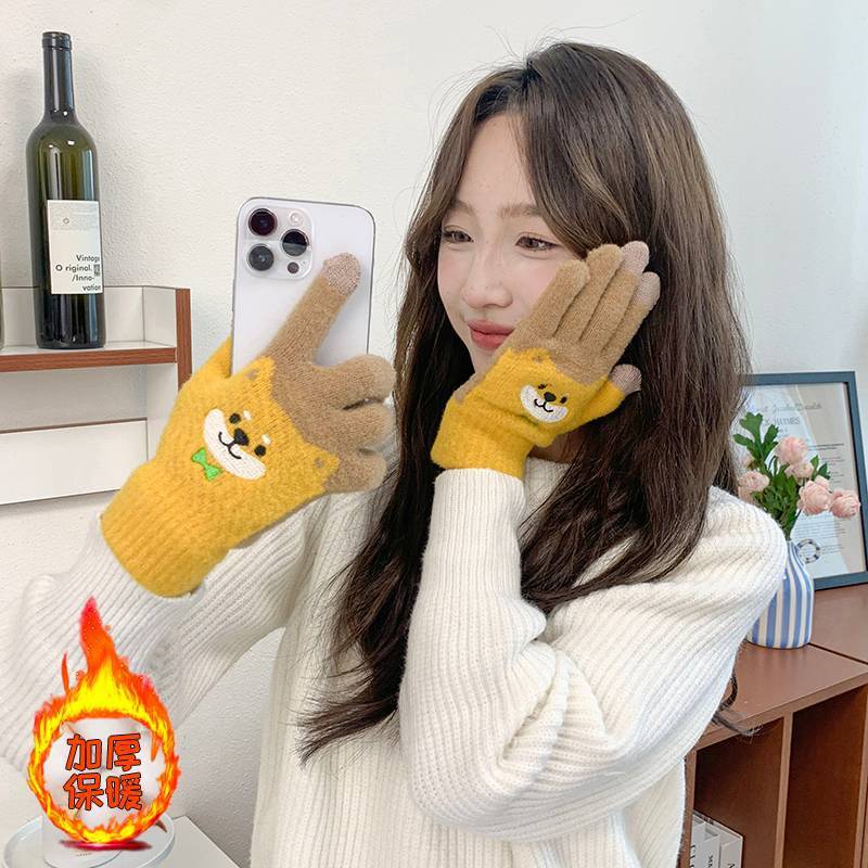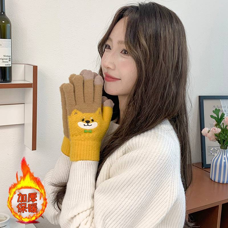 장갑 겨울 여성의 새로운 높은 가치 두꺼운 따뜻한 터치 스크린 귀여운 패션 학생 기모 두꺼운 사이클링 감기