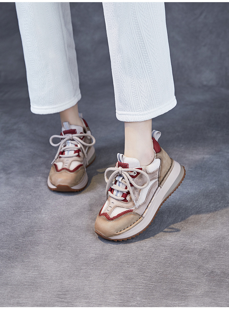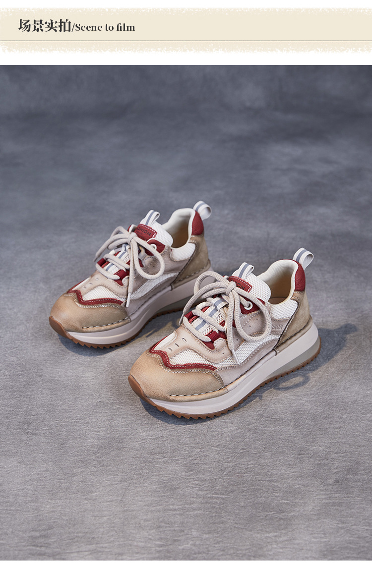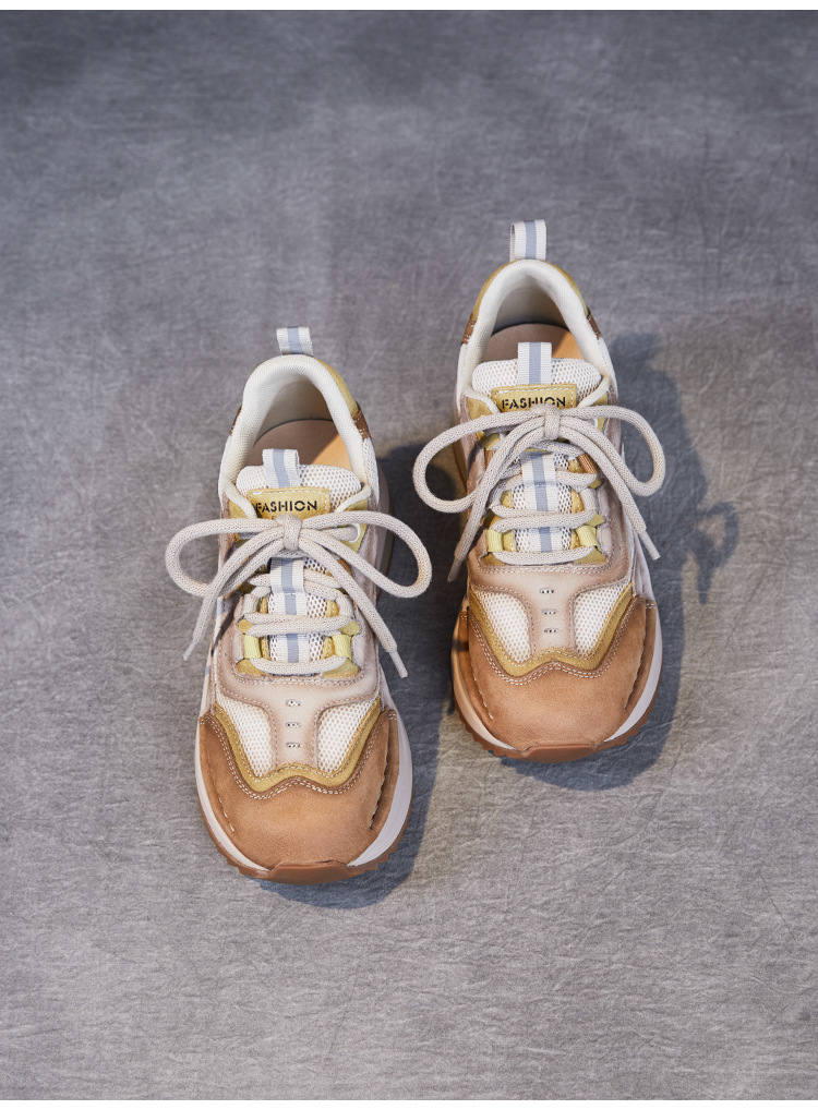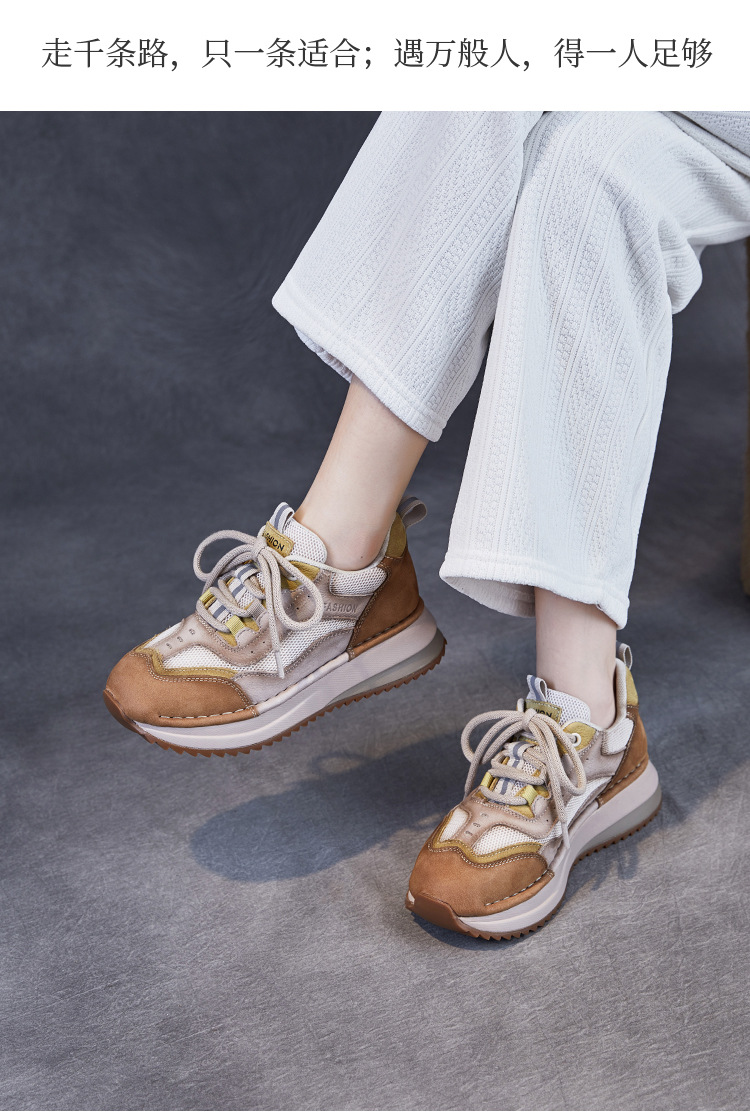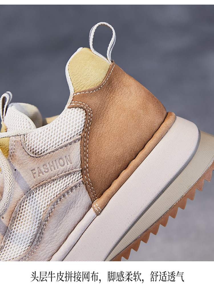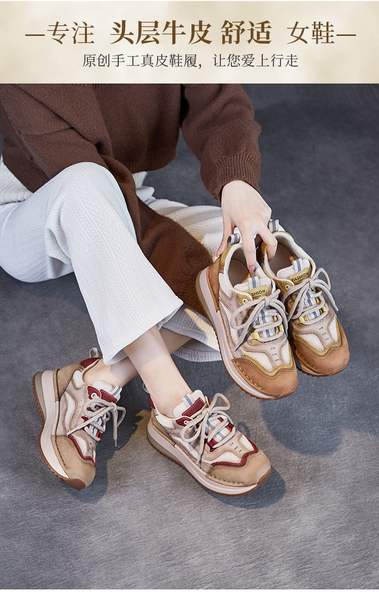레트로 아빠 신발 여성의 2025 년 봄과 여름 새로운 국가 스타일 스포츠 캐주얼 슈즈와 일치하는 미국 자연 색상 첫 번째 레이어 소 가죽 색상