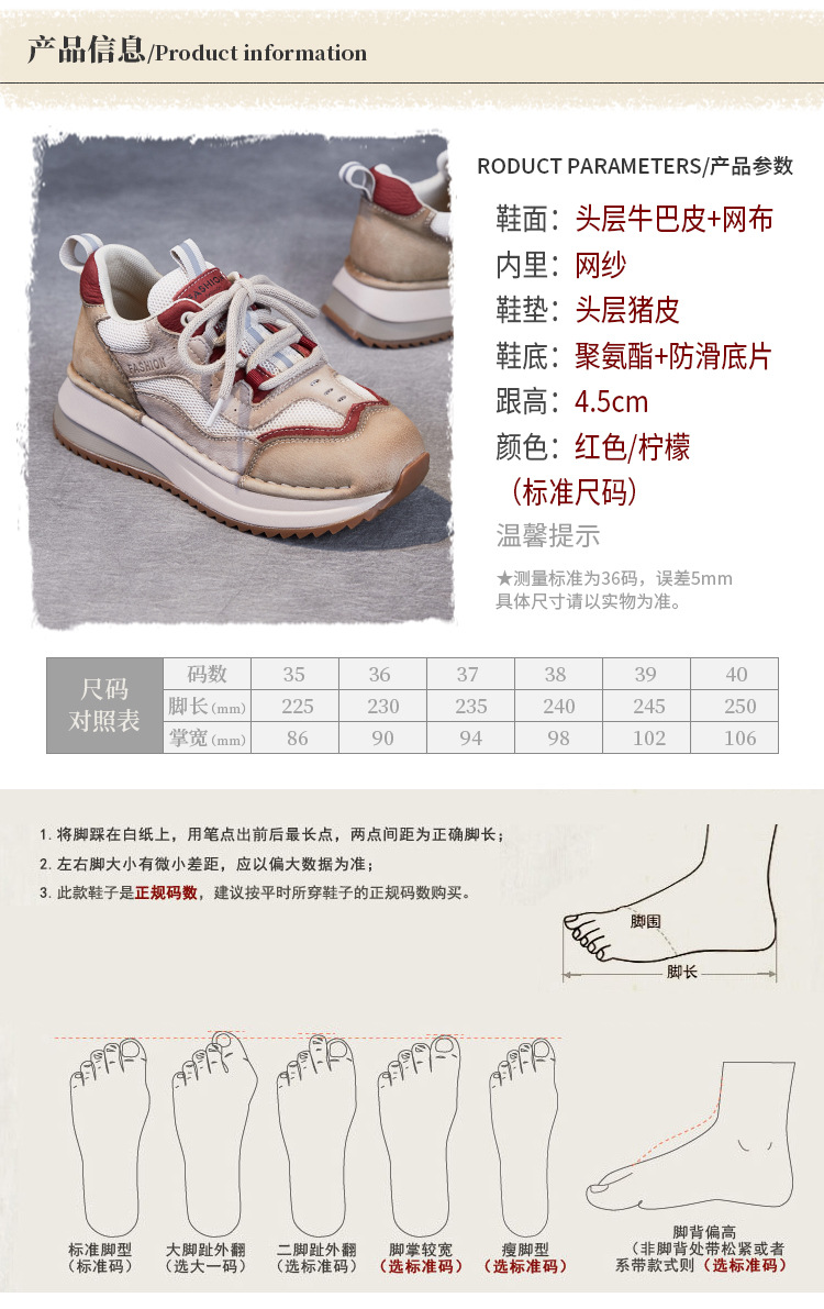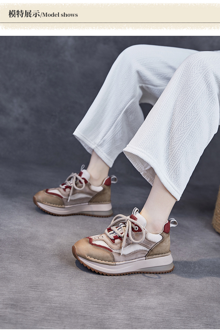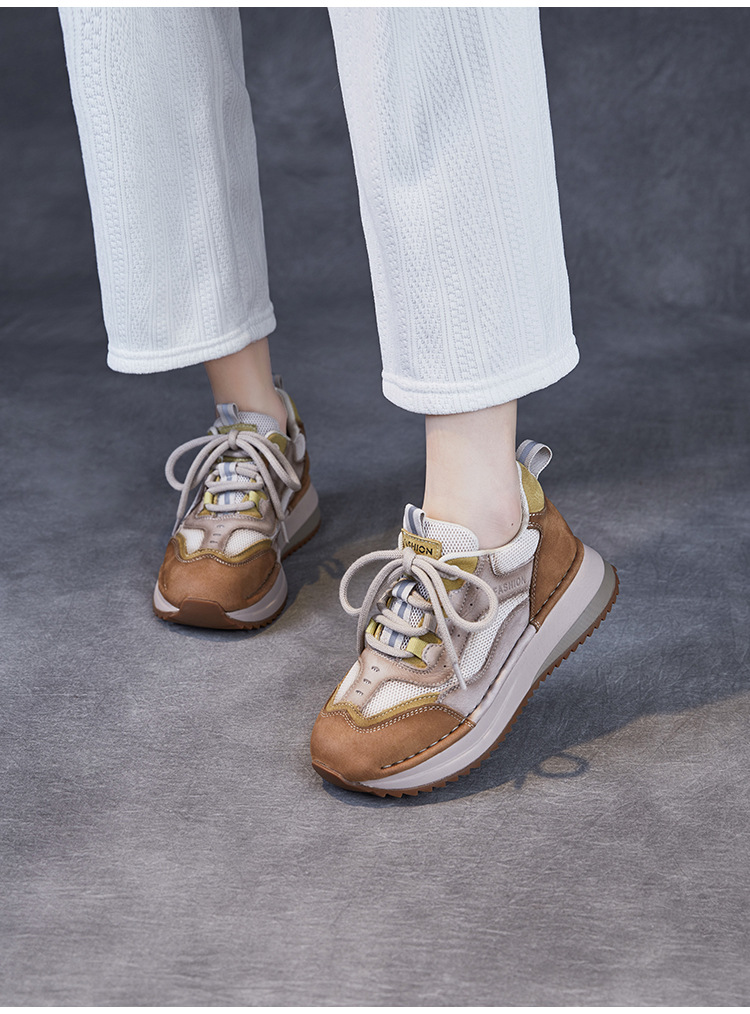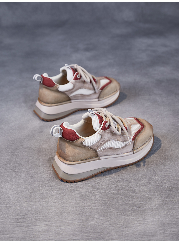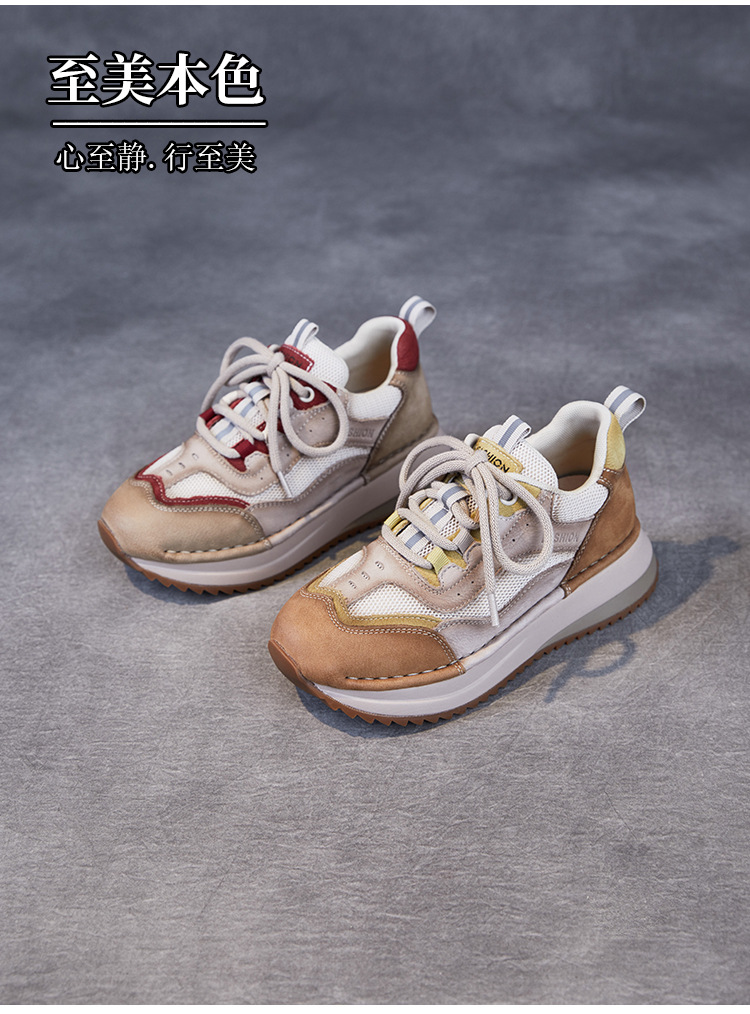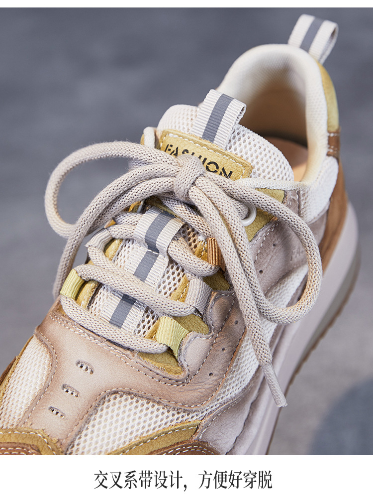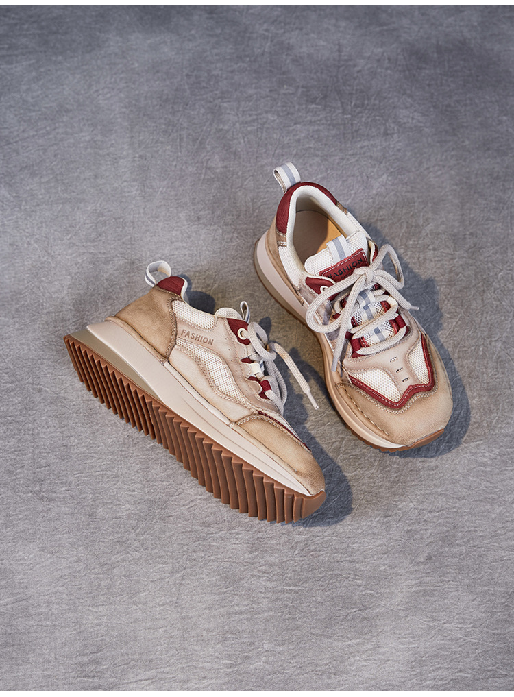 레트로 아빠 신발 여성의 2025 년 봄과 여름 새로운 국가 스타일 스포츠 캐주얼 슈즈와 일치하는 미국 자연 색상 첫 번째 레이어 소 가죽 색상