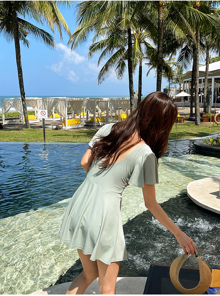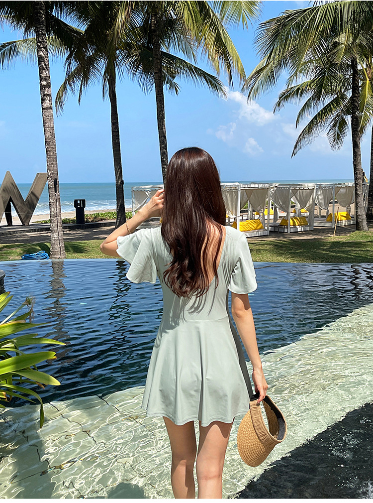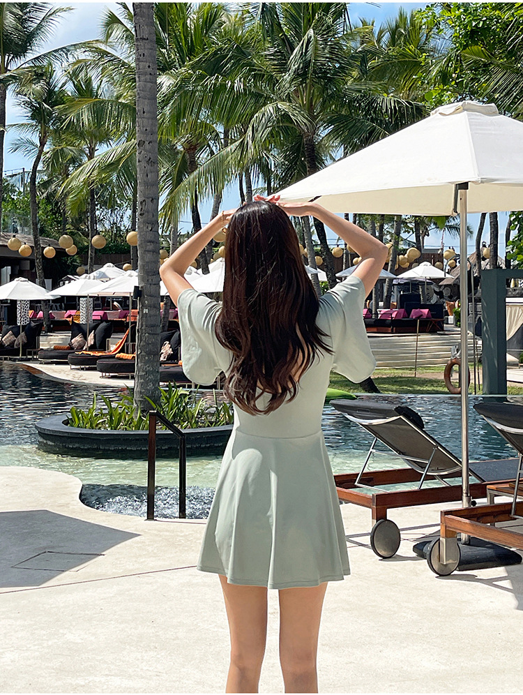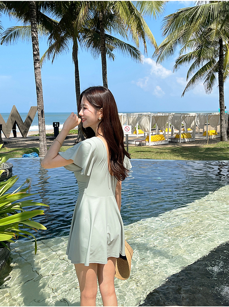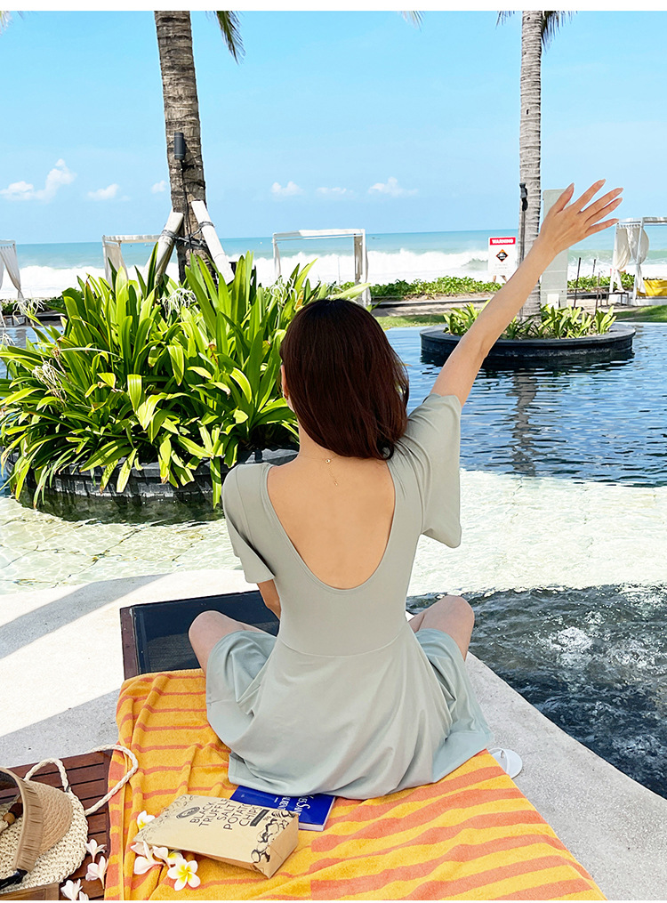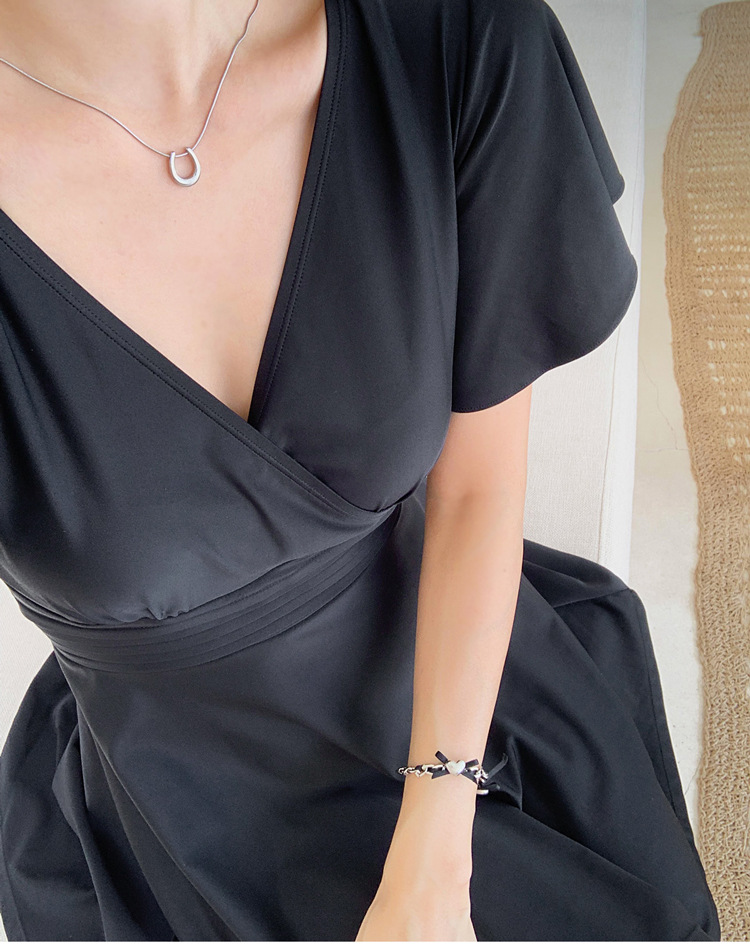 프랑스 패션 플러스 사이즈 원피스 수영복 여성용 V 넥 슬림 벨리 커버 플랫 앵글 온천 통통녀 어머니 솔리드 컬러 수영복스토어 가기
