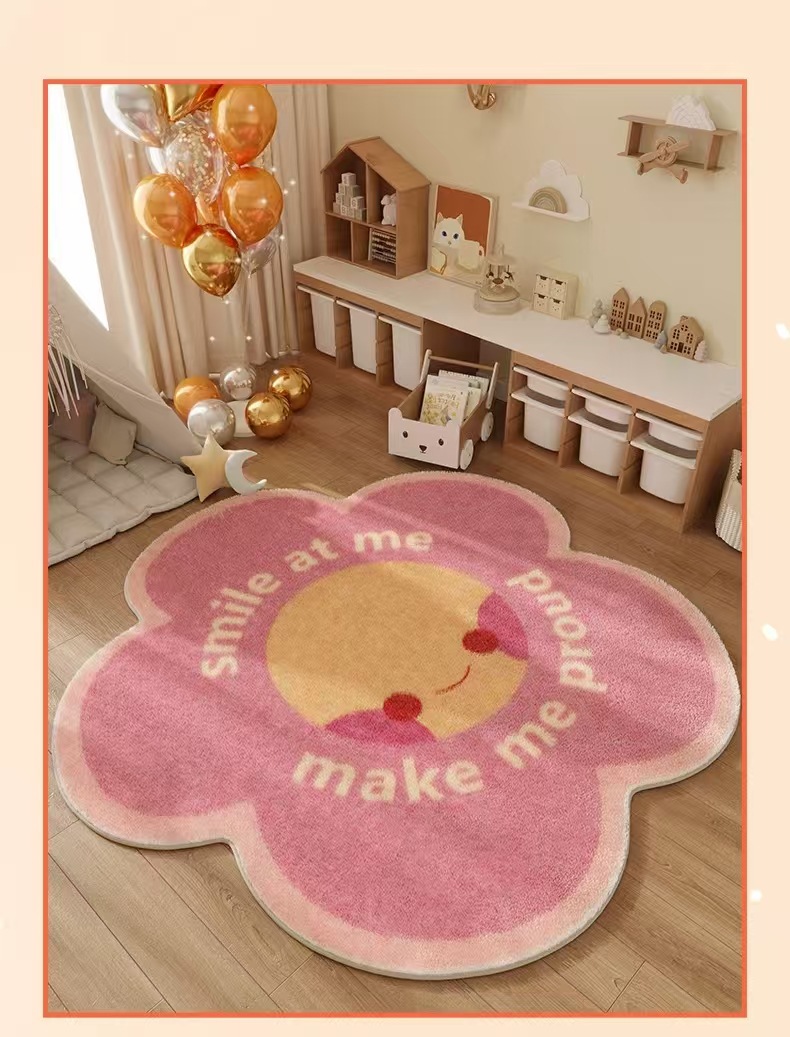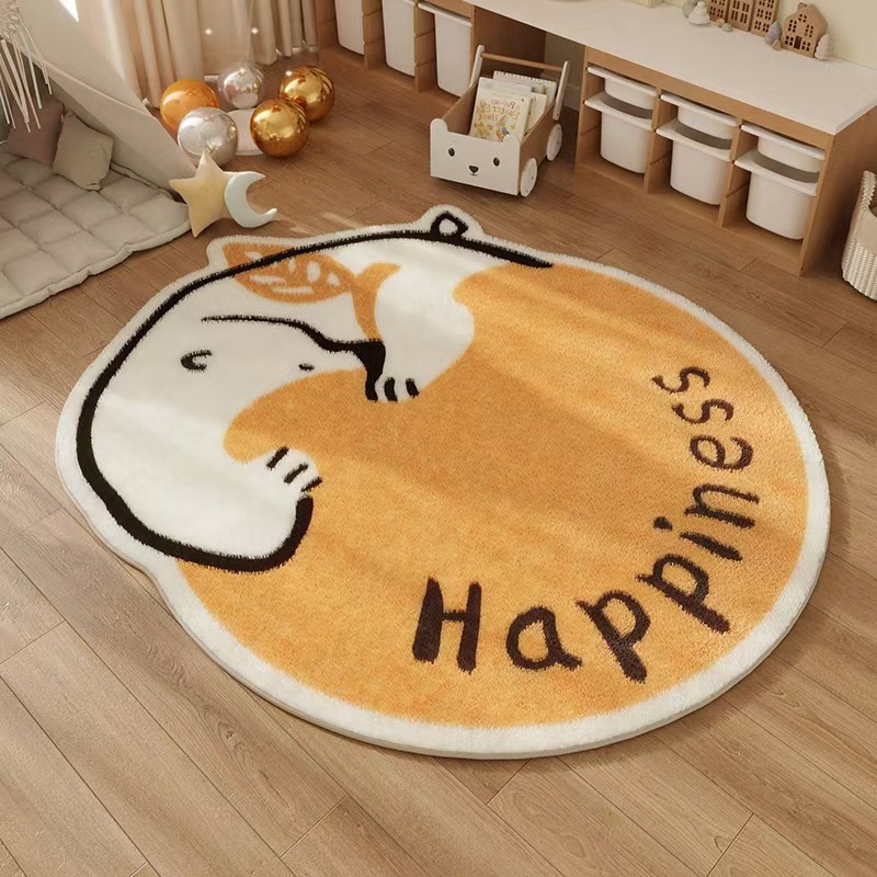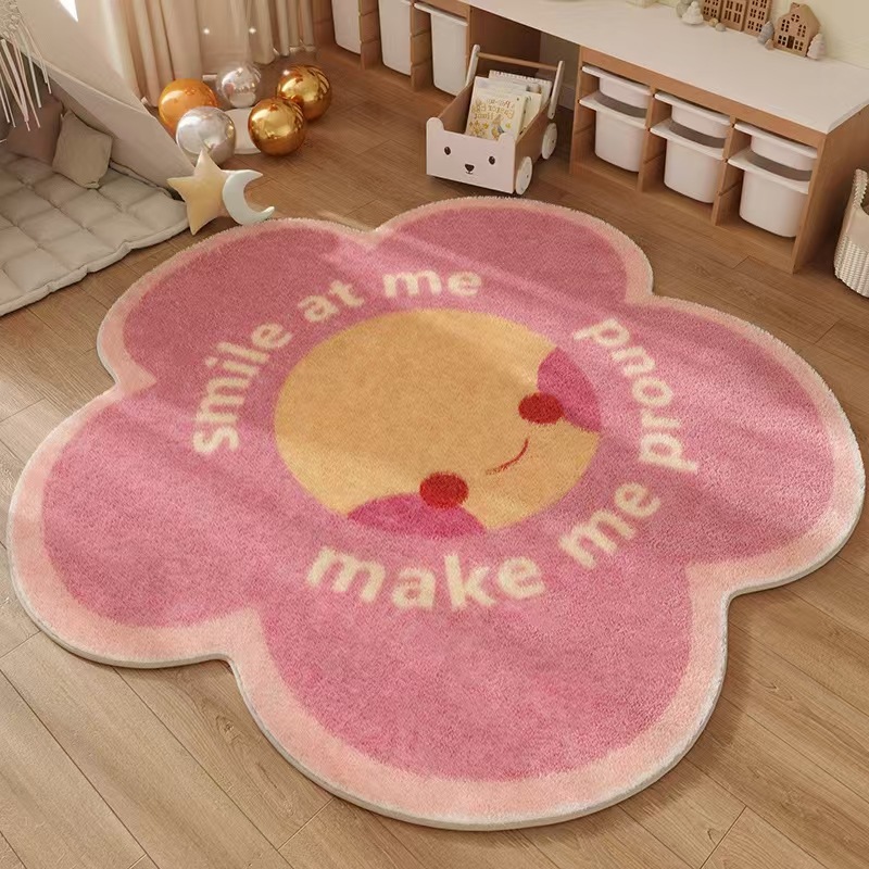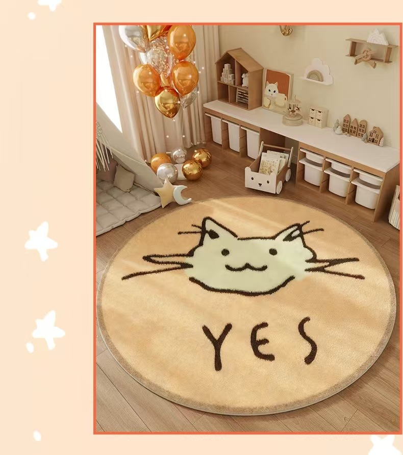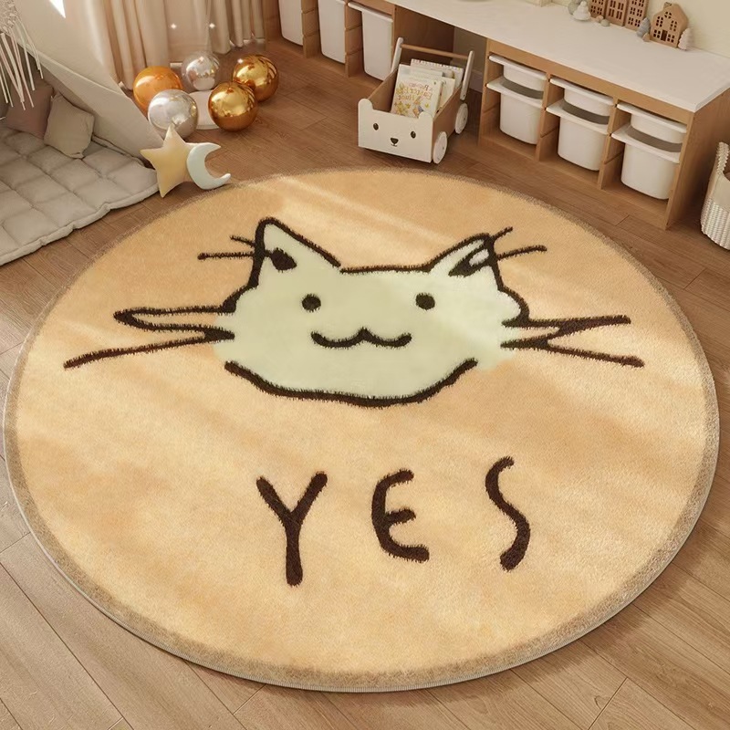 맞춤형 어린이 방, 관리가 쉬운 원형 카펫, 학습 및 독서 공간, 모조 캐시미어 카펫, 만화 침실 침대 발 매트스토어 가기
