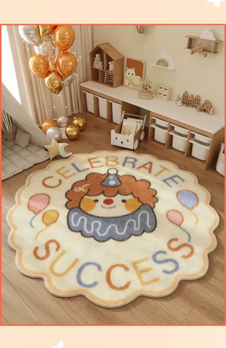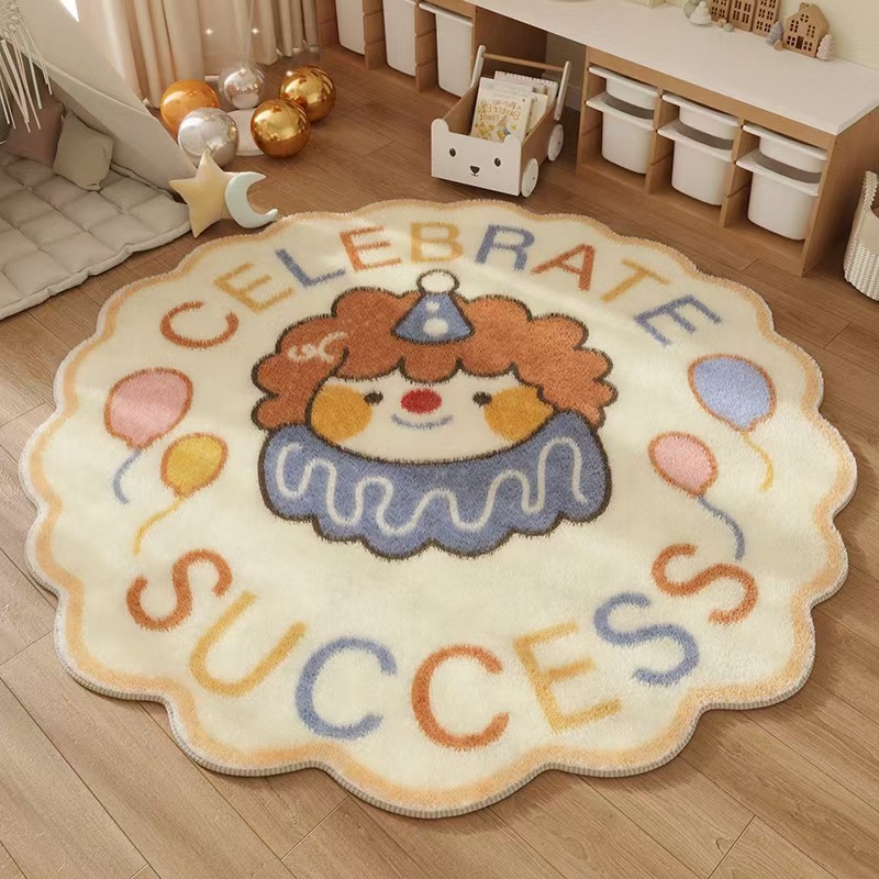 맞춤형 어린이 방, 관리가 쉬운 원형 카펫, 학습 및 독서 공간, 모조 캐시미어 카펫, 만화 침실 침대 발 매트