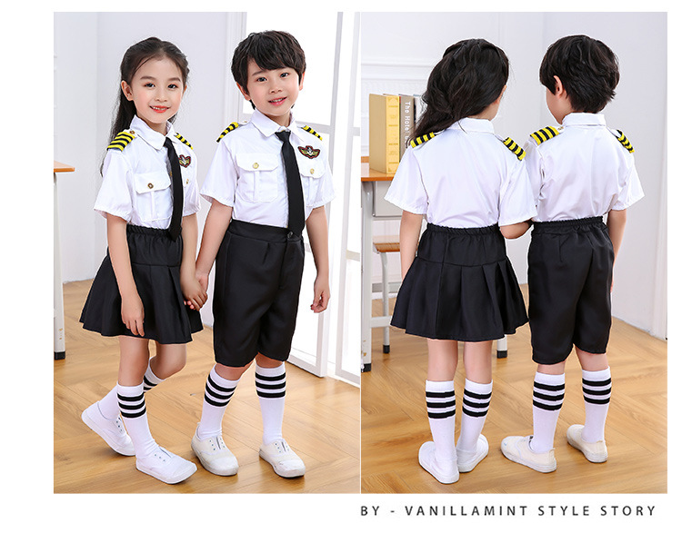 어린이 공군 스튜어디스 선장 유니폼 비행기 사단 소년 소녀 항공사 의류 항공 테이블 성능 세트스토어 가기