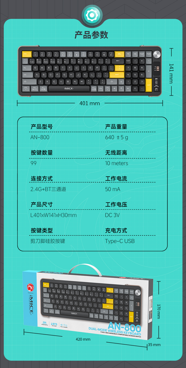 개인 모델 2025 뜨거운 판매 가위 피트 X 아키텍처 충전식 듀얼 모드 탄성 느낌 2.4G 블루투스 키보드 AN-800